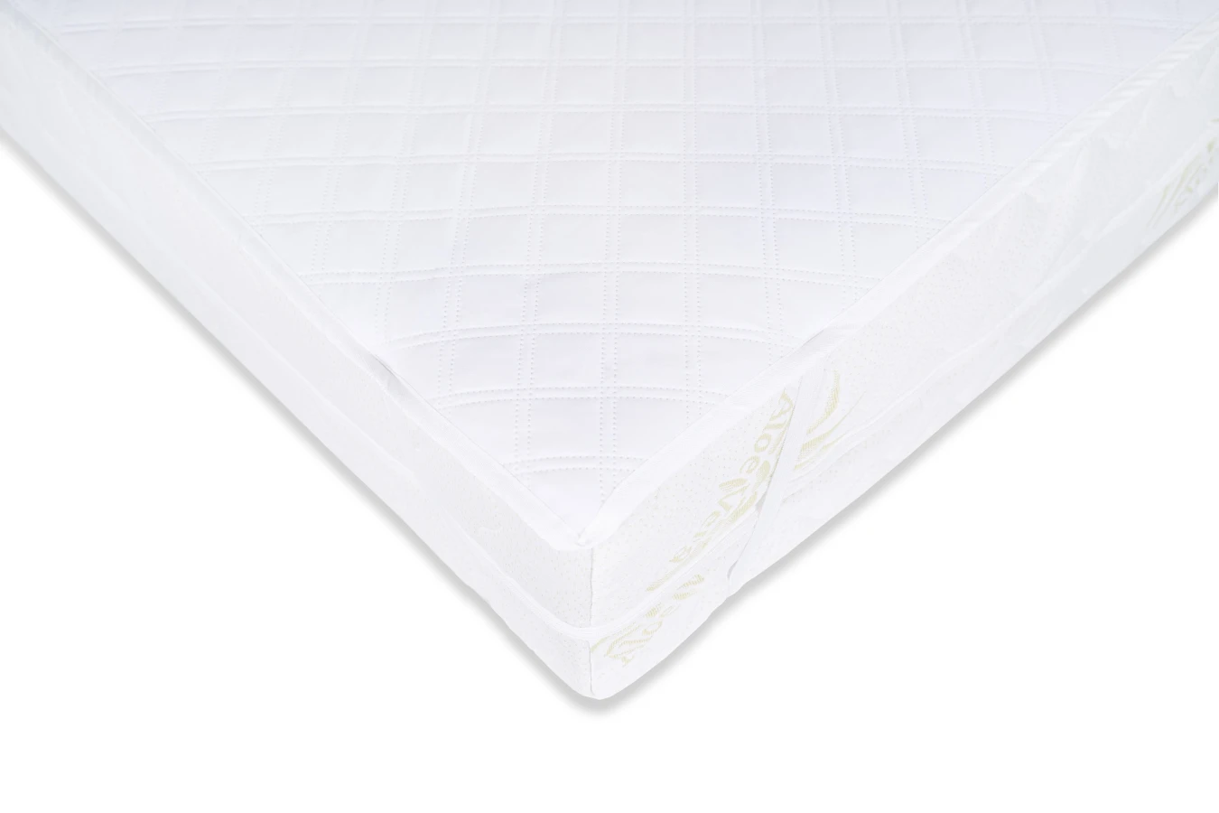 - Wasserdicht - zusätzlich absorbiert die obere Schicht die Feuchtigkeit, die untere Schicht isoliert vollständig von der Matratzenoberfläche, die untere Schicht ist mit einer schützenden PP-Membran bedeckt