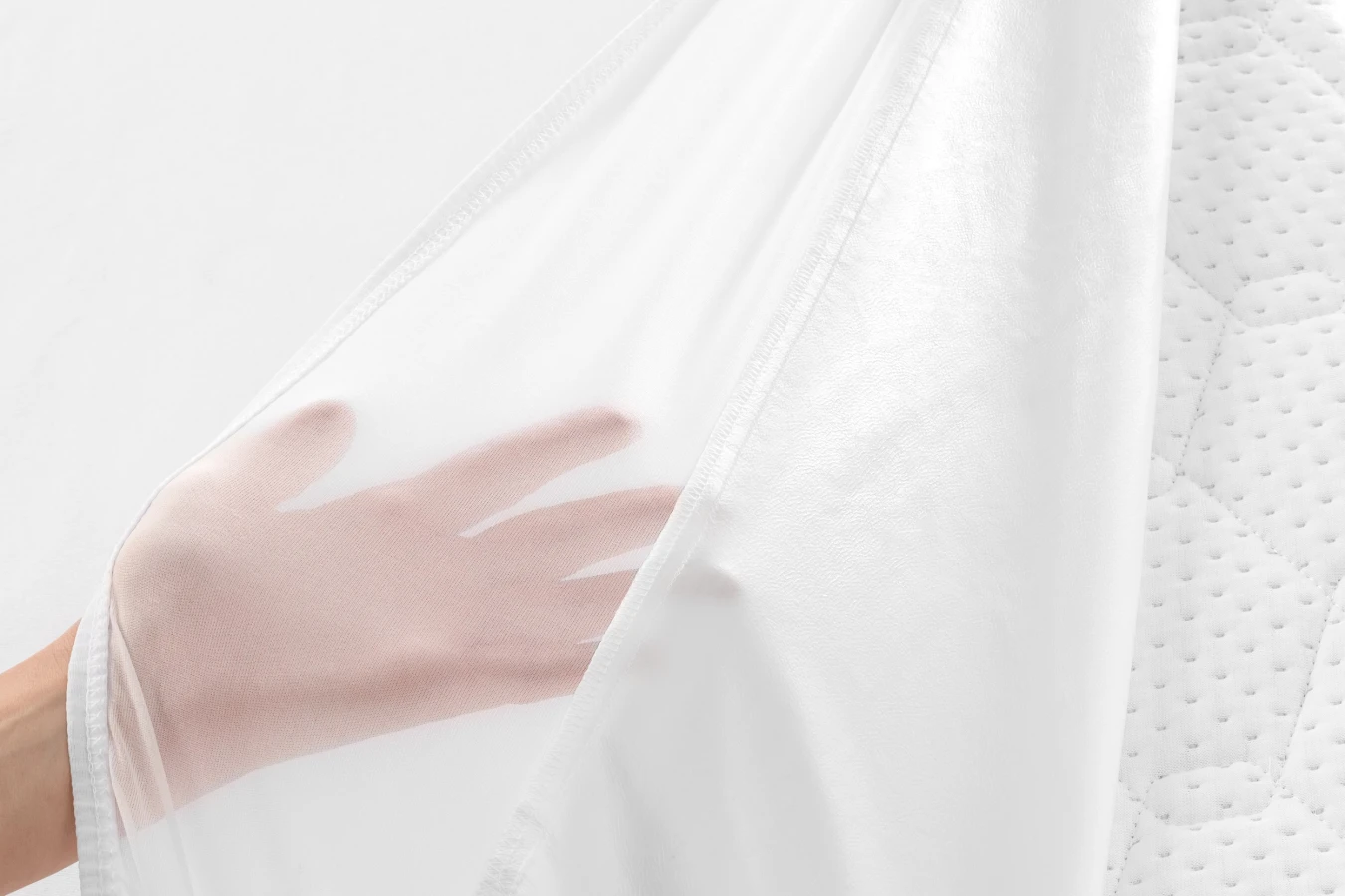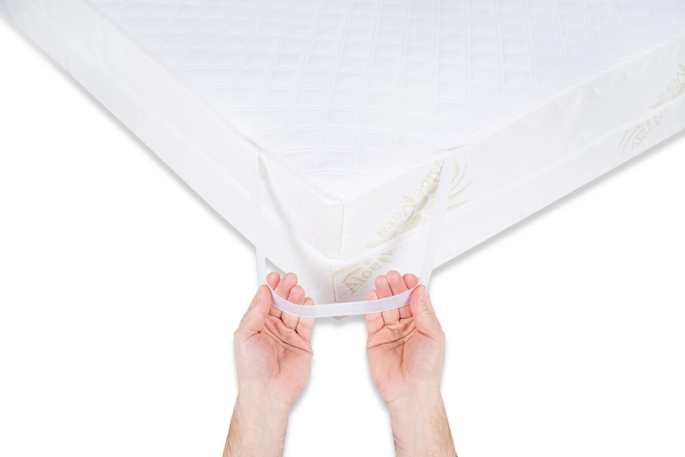 Der wasserdichte Schutz sieht auf den ersten Blick aus wie ein normales Laken mit einem Gummiband. Er wird einfach über die Ecken der Matratze gestülpt und schützt so nicht nur die Oberseite, sondern auch die Seiten effektiv.