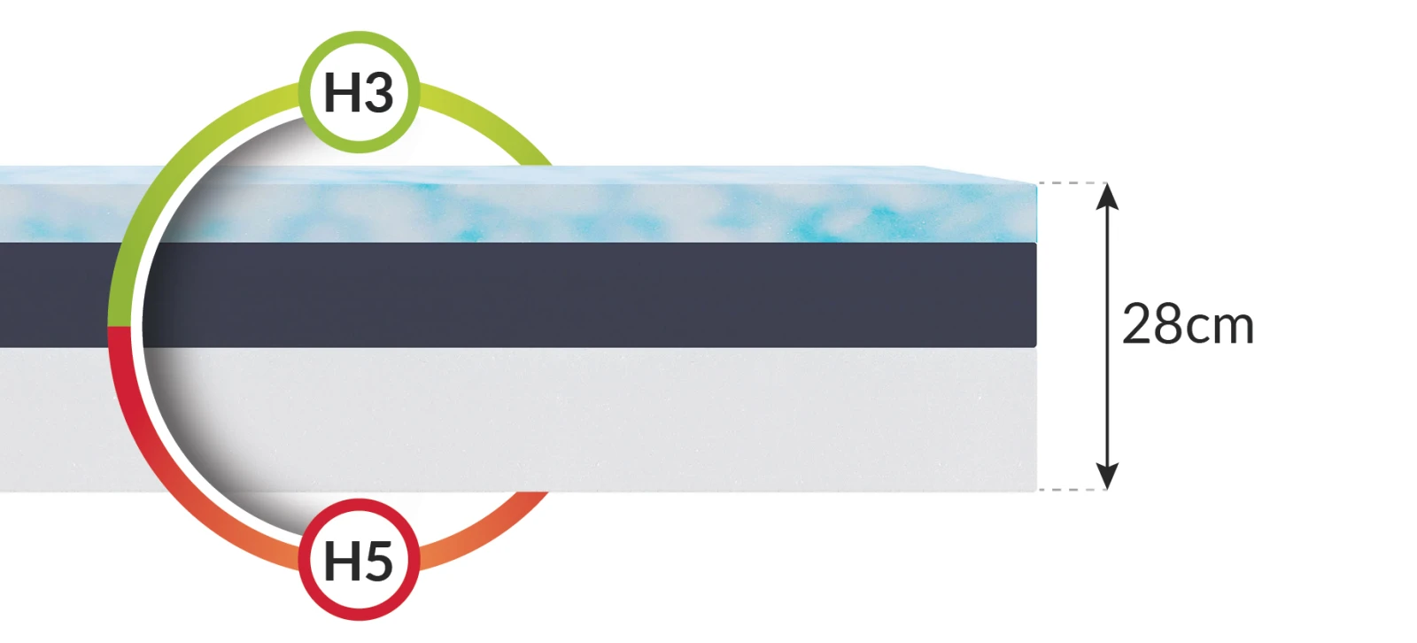 Die High-End-Schaumstoffmatratze ARCTIC ELITE wurde entwickelt, um Ihren Schlafkomfort zu erhöhen. Die PREMIUM-Klasse dieser Matratze zeigt sich im EUCAFEEL®-Schaumstoff, der es Ihnen ermöglicht, die Temperatur in Ihrem Bett um 1 Grad Celsius zu reduzieren. Die innovative Struktur dieses Schaums sorgt für eine hervorragende Wärme- und Feuchtigkeitsableitung, was sich in der Qualität der Erholung niederschlägt. Der Kern der Matratze besteht aus RESILENCE-Polyurethanschaum, der nicht nur eine angemessene Unterstützung des Körpers bietet, sondern auch sehr widerstandsfähig gegen Verformungen ist. Dank dieser Eigenschaft kann die Matratze viele Jahre lang verwendet werden. Ergänzt wird die Matratze durch den hochelastischen HR-Schaum, dessen poröse Struktur eine bessere Luftzirkulation ermöglicht. Dieser Schaumstoff verhindert das Wachstum von gefährlichen Hausstaubmilben und Pilzen. Die Schaumstoffmatratze ARCTIC ELITE ist ein zweiseitiges Produkt mit einem Härtegrad von H3 und H4.