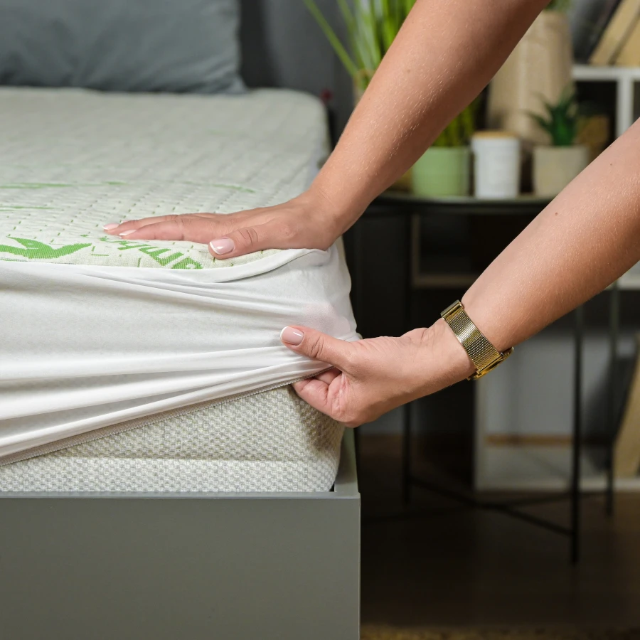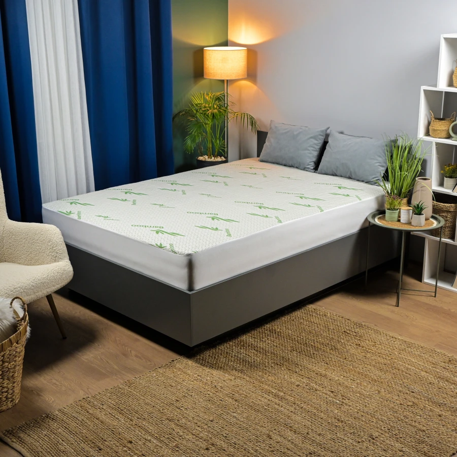 Der BAMBOO-Matratzenschoner schützt Ihre Matratze wirksam vor Flüssigkeiten und Schmutz und sorgt so für einen gesunden, sicheren Schlaf und ein Höchstmaß an Hygiene. Stellen Sie sich vor, Sie schlafen eingewickelt in eine weiche Bambusdecke. Ihre außergewöhnliche Weichheit und natürliche Leichtigkeit geben Ihnen das Gefühl, auf einer Wolke zu schweben, eingetaucht in die beruhigende Harmonie der Natur. Dieses angenehme Gefühl steht Ihnen jetzt zur Verfügung!