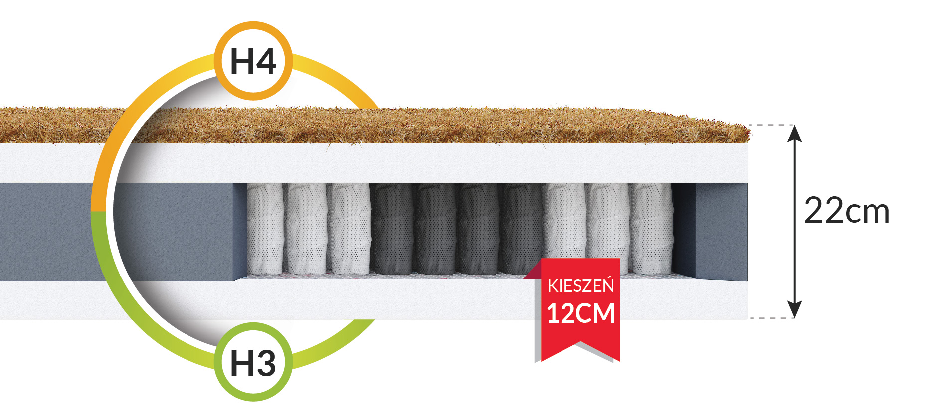 Die BLISS-Matratze ist für maximalen Schutz während des Schlafs konzipiert. Ihre Basis ist eine Tascheneinlage, die aus Federn besteht, die mit der NanoHARD-Doppelhärtungstechnologie hergestellt wurden . Jede dieser Federn befindet sich in einer separaten Stofftasche, die eine ergonomische Körperposition während des Schlafs garantiert. Dieses Modell verfügt außerdem über 7 Zonen mit unterschiedlicher Härte, die sich perfekt an den Druck der verschiedenen Körperteile anpassen.