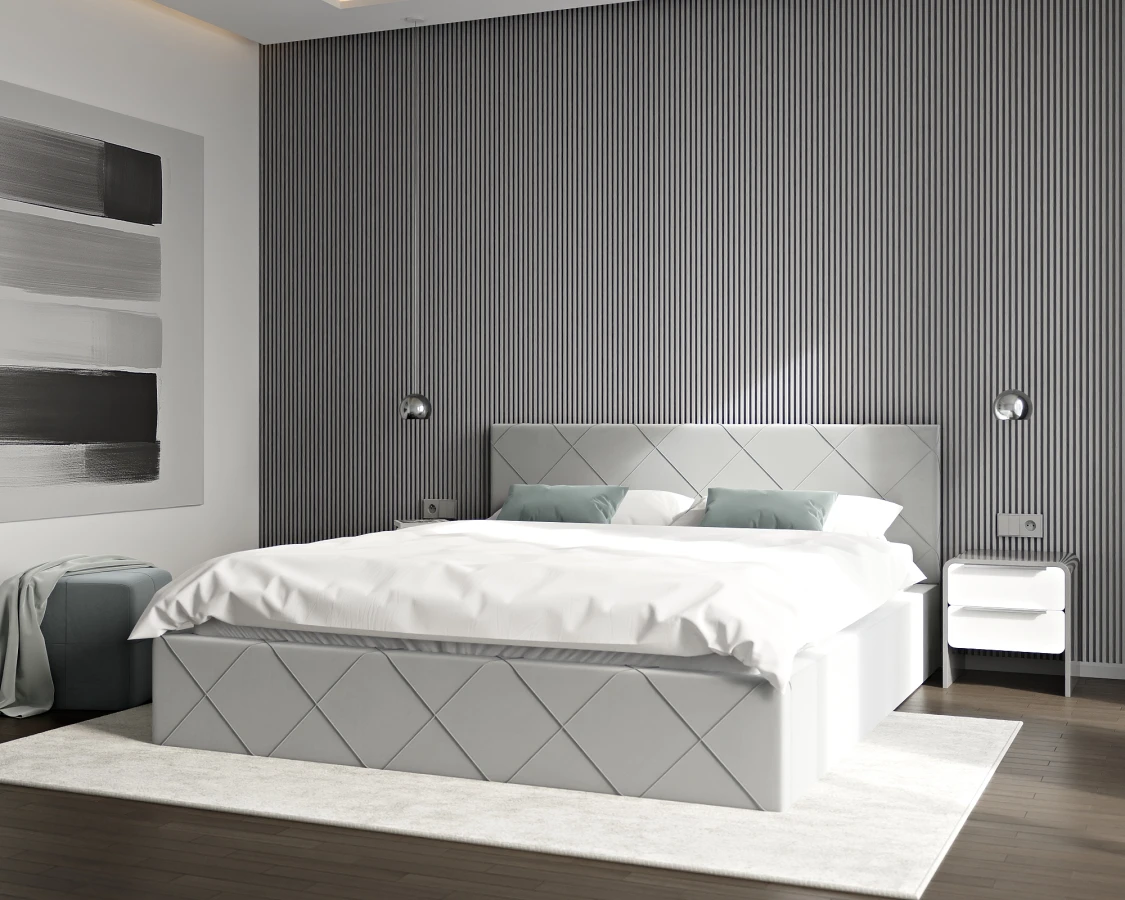 Das ideale Schlafzimmer sollte sich durch Komfort und Funktionalität auszeichnen und auf die individuellen Bedürfnisse seiner Nutzer zugeschnitten sein. Das Polsterbett CARO ist die perfekte Ergänzung für diesen Raum und setzt einen stilvollen Akzent, der moderne Trends mit Schlafkomfort verbindet. Seine klassische Linie wurde mit originellen Nähten bereichert, die das Auge ansprechen und den Raum noch interessanter machen!