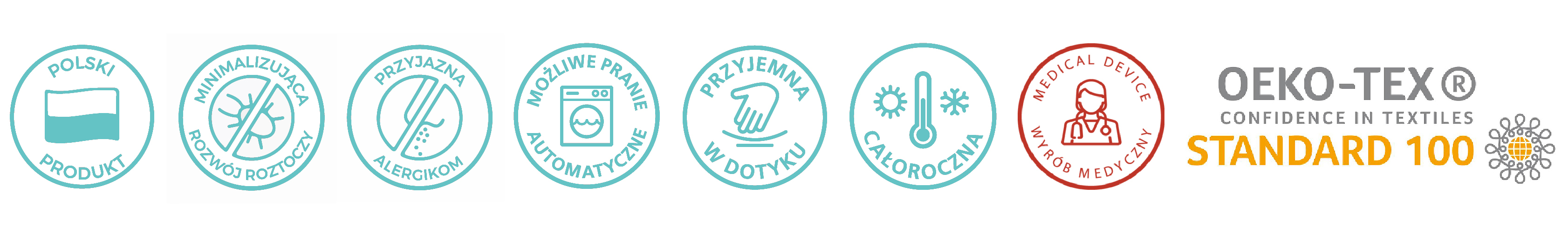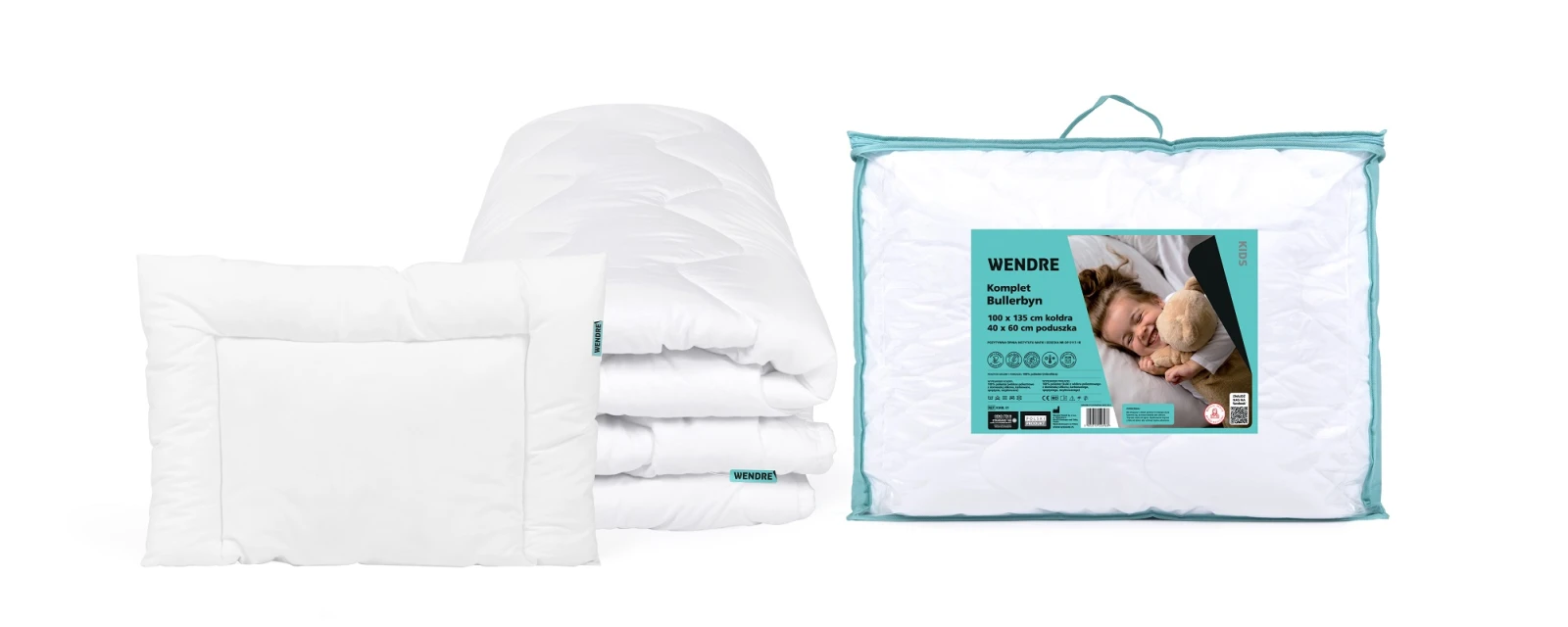 Das Bullerbyn-Set ist im Register für Medizinprodukte eingetragen und wird von medizinischen Einrichtungen in ganz Polen empfohlen, da es die höchsten Sicherheits- und Qualitätsstandards erfüllt. Dank strenger Tests und Produktionskontrollen können Sie sicher sein, dass unsere Produkte frei von Schadstoffen sind. Der erste Vorteil für den Benutzer ist daher ein sicherer Schlaf ohne das Risiko von Allergien oder Hautreizungen, was besonders für Menschen mit empfindlicher Haut wichtig ist.Der zweite Vorteil ist der hohe Komfort, der sich aus der zertifizierten Qualität der Materialien ergibt, was sich in einer verbesserten Schlafqualität und einem allgemeinen Wohlbefinden niederschlägt.