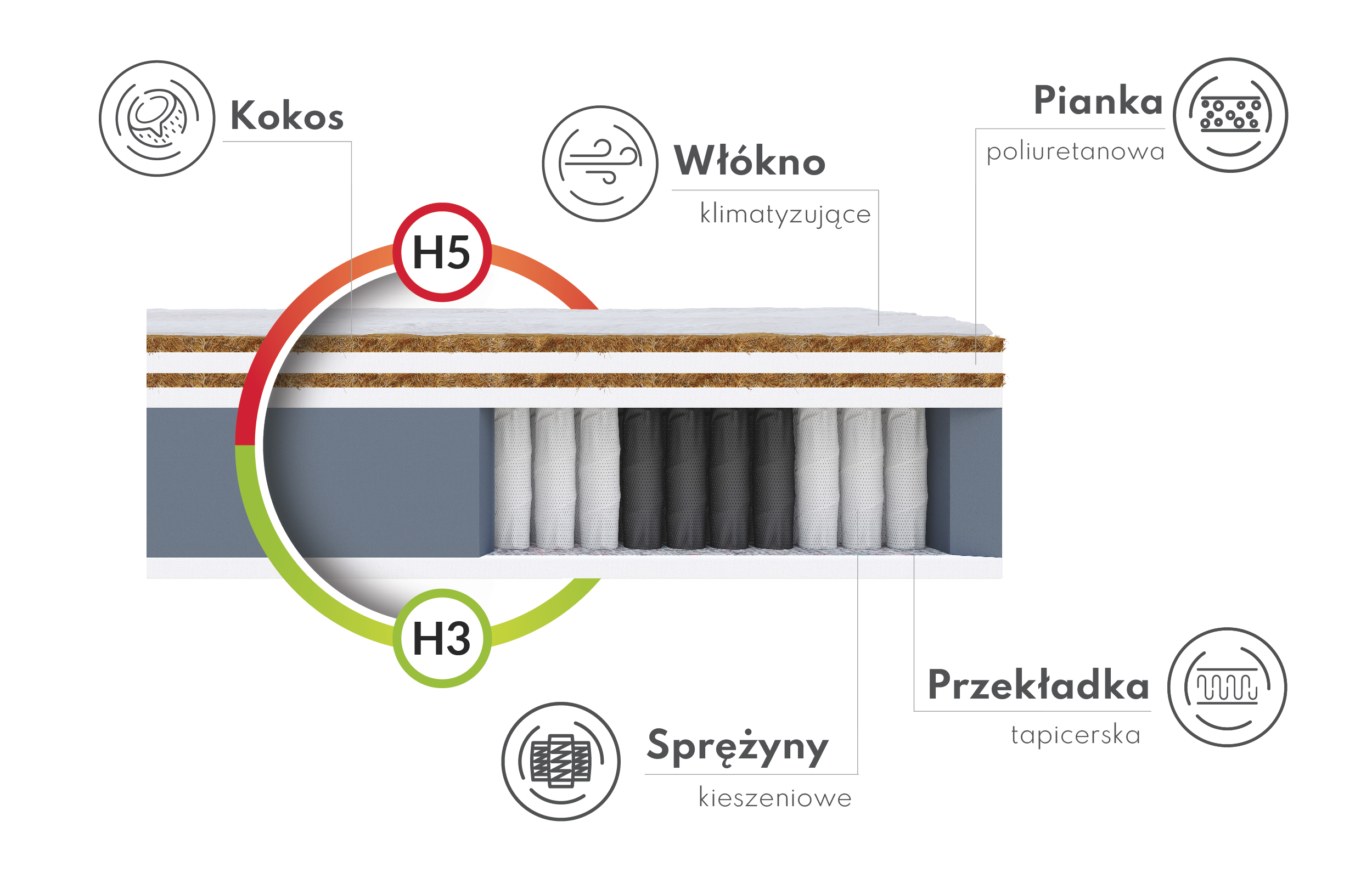 - Klimafaser - verbessert die Luftzirkulation im Inneren der Matratze