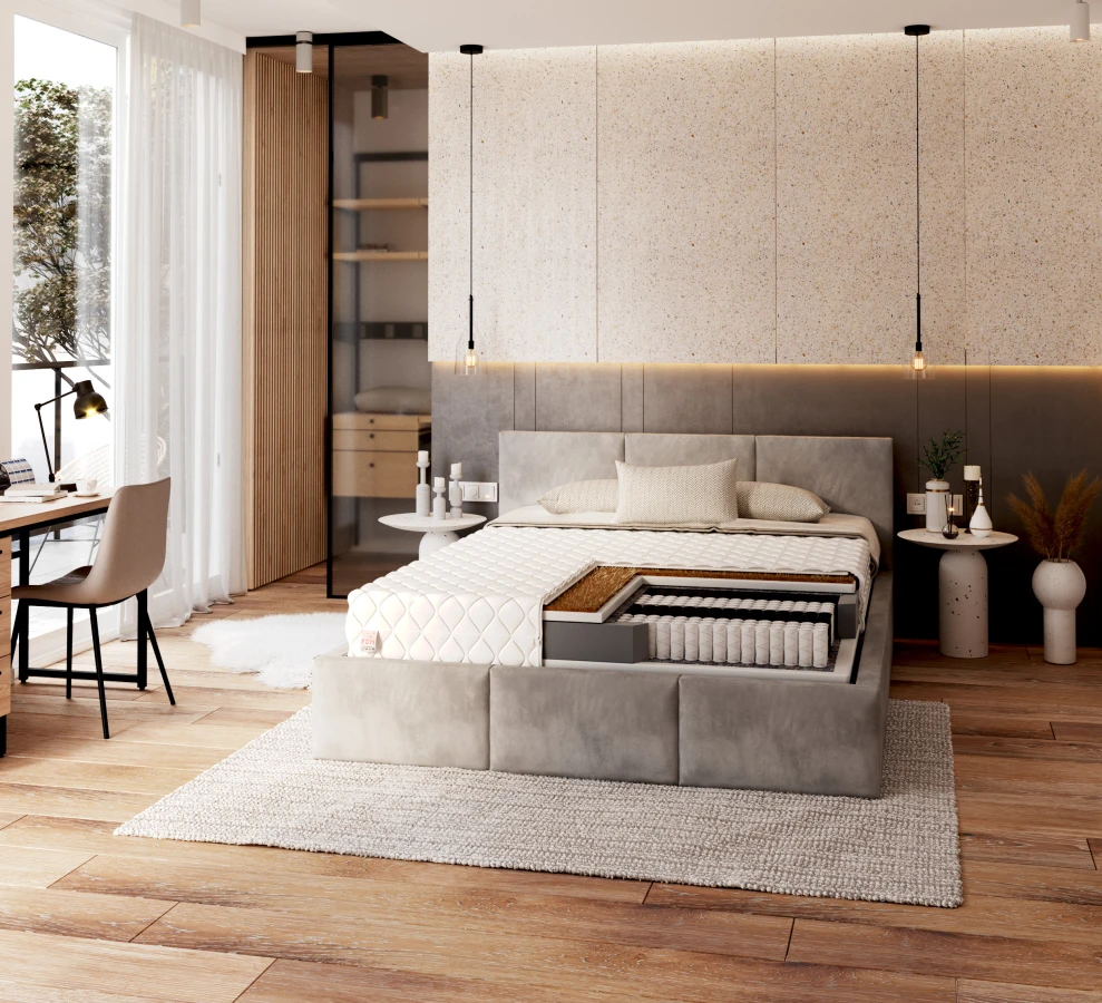 Die Family-Matratze ist eine orthopädische Matratze, die die Schlafqualität von körperlich aktiven Menschen, Senioren, Patienten mit Rückenproblemen, aber auch von Menschen, die ihr Skelettsystemprophylaktisch pflegen wollen, verbessert. Sie ist nicht nur für Kleinkinder geeignet, die aufgrund ihrer Körpergröße nicht in die oben genannten Zonen passen und die Federn daher nicht richtig funktionieren. Es ist erwähnenswert, dass die Family-Matratze eine ideale Wahl für Paare ist. Die getrennte Funktion der Federn führt auch zu einer geringeren Bewegungsübertragung während des Schlafs. Wenn ein Partner nachts häufig aufsteht oder sich im Schlaf wälzt, beeinträchtigen seine Bewegungen nicht die Funktion der gesamten Matratzenoberfläche und wecken den anderen nicht auf.