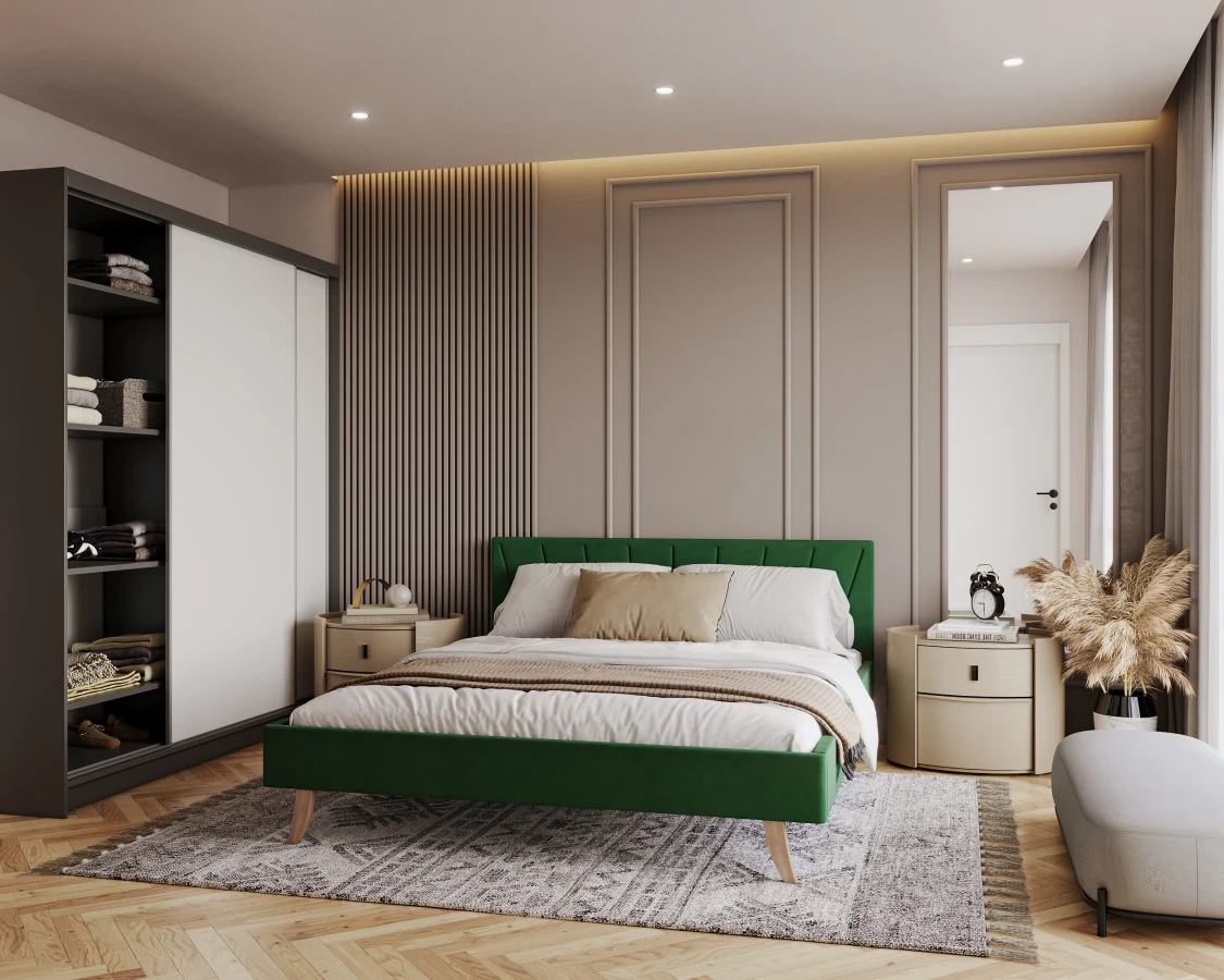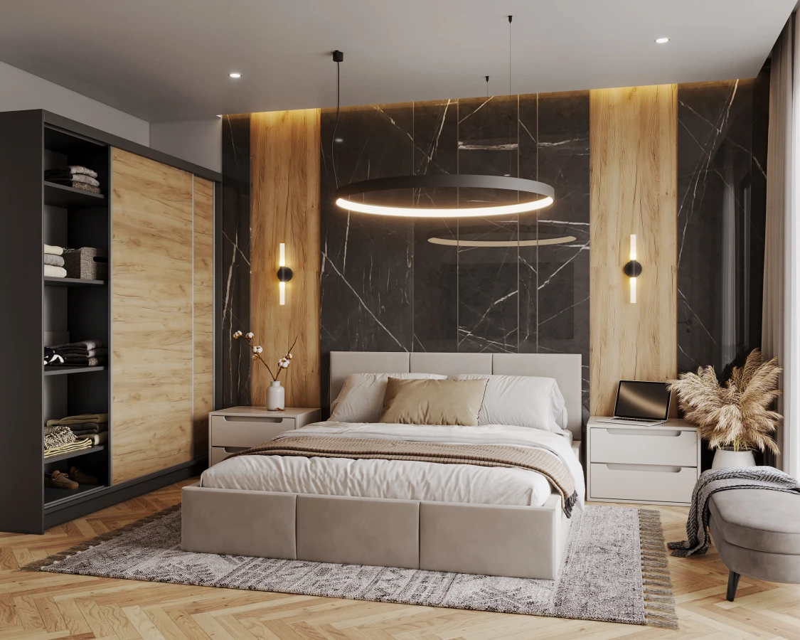 Der moderne, funktionale zweitürige Schiebeschrank FARKO ist ein Möbelstück, das in Ihrem Zuhause nicht fehlen darf. Hoch und äußerst geräumig, mit sinnvollen und praktischen Elementen ausgestattet, bietet er erfolgreich Platz für all Ihre Kleidung und mehr! Der Schrank bietet Platz für Alltags- und Oberbekleidung, aber auch für Schuhe, Accessoires und sogar für Bettwäsche oder Ersatzhandtücher. Das Möbelstück ist perfekt für jedes Schlafzimmer, aber auch für viele andere Räume im Haus! Wo kann unser zweitüriger FARKO-Kleiderschrank noch verwendet werden? Dieses Modell wird auch perfekt in: