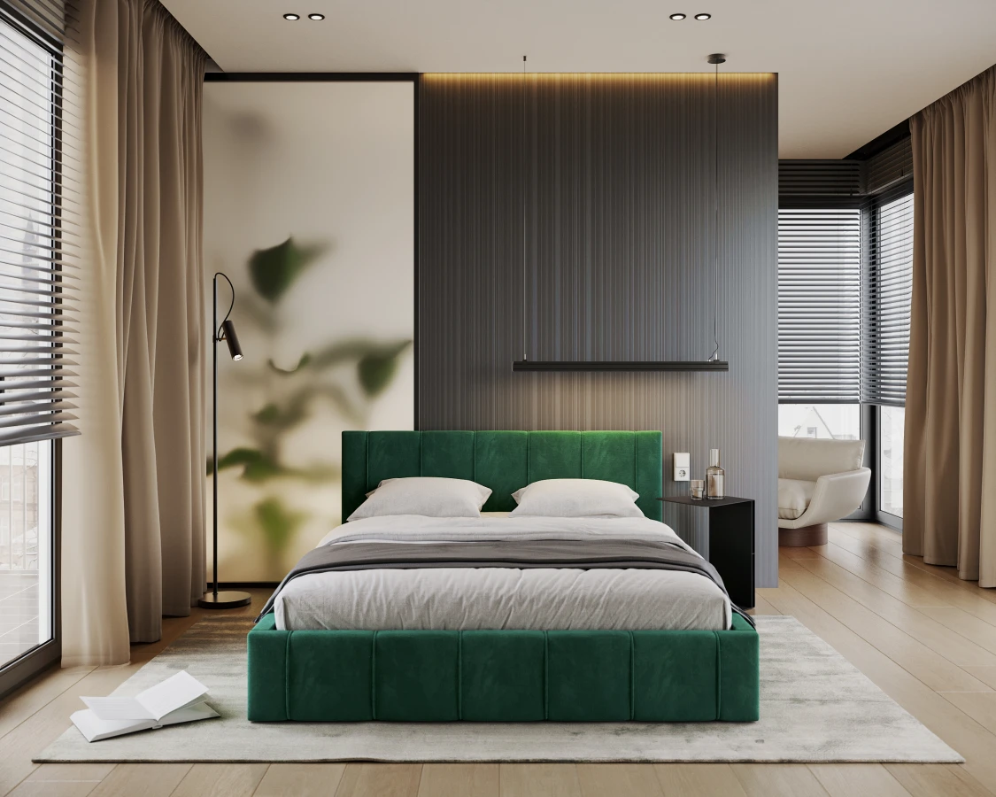 Ein Schlafzimmerbett sollte neben seiner Grundfunktion auch nützlich sein. Deshalb ist das Modell FLORIDA mit einem großen Behälter für Bettzeug oder andere Dinge ausgestattet, die nicht in den Kleiderschrank passen. Er ist sehr geräumig, und da er nahe am Boden steht, können schwere Gegenstände darin verstaut werden, ohne dass die Gefahr besteht, dass der Boden des Stauraums zusammenbricht. Durch den anhebbaren Matratzenrahmen ist ein leichter Zugang gewährleistet. Er arbeitet mit Gasflaschen, so dass zum Anheben nur wenig Kraft erforderlich ist. Das Gestell des Rahmens besteht aus Metall, während die Federleisten aus Birkenholz in Kunststoffhaltern gelagert sind. Diese Lösung sorgt dafür, dass die gesamte Konstruktion leise ist und die vom Bett ausgehenden Vibrationen gut gedämpft werden. Die richtige Verteilung der Latten über die gesamte Länge trägt zu einer guten Belüftung der Matratze bei.