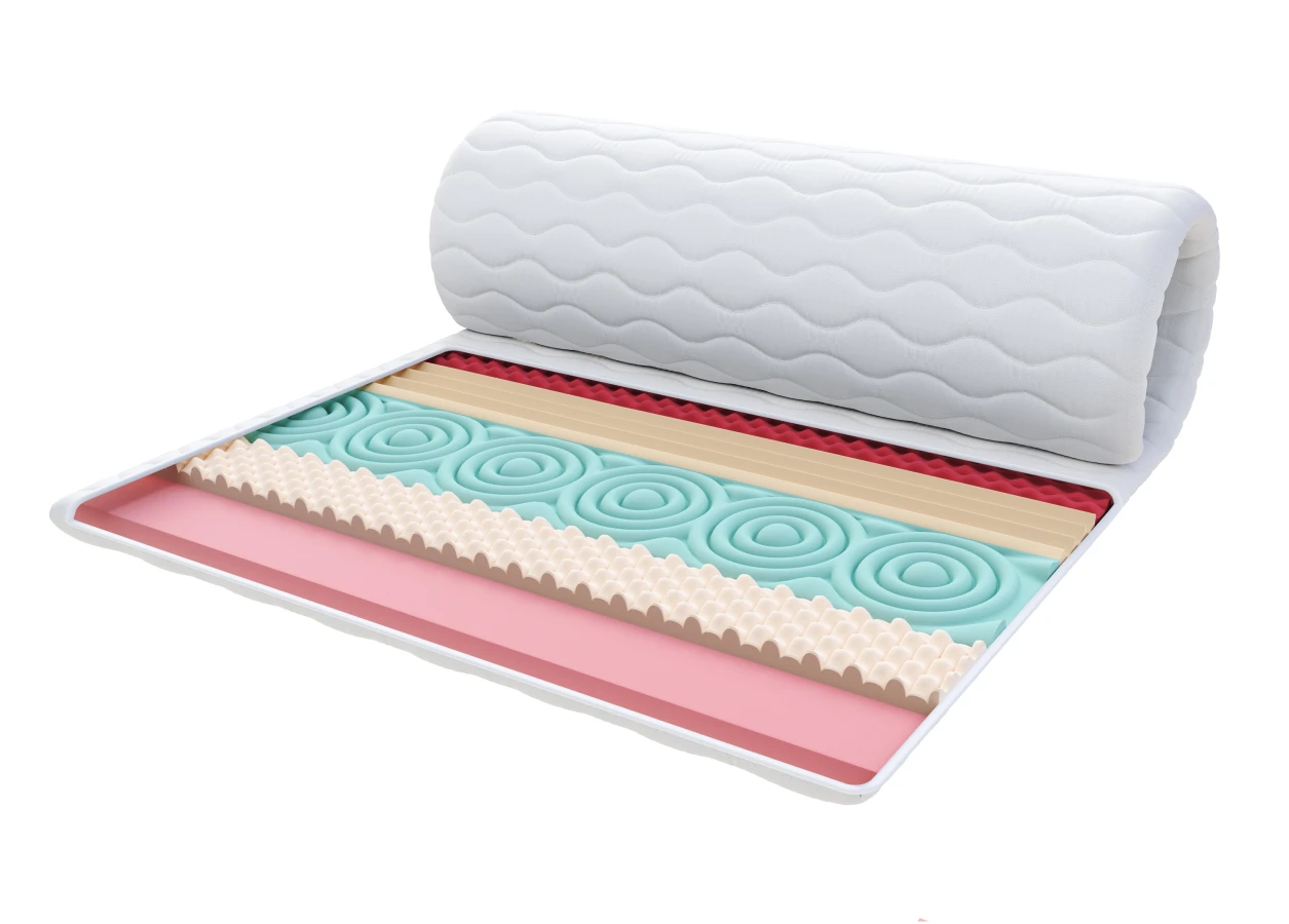 Die Matratzenauflage wurde aus zwei Schaumstoffarten hergestellt. Der erste ist ein profilierter, hochelastischer Schaumstoff HR 30, der die Matratze in sieben quer verlaufende Stützzonen unterteilt, die der anatomischen Struktur des Körpers des Schläfers entsprechen. Durch seine ungleichmäßige Zellstruktur erreicht er bessere Parameter als herkömmliche Schaumstoffe. Das bedeutet, dass sie sich individuell an jede Körperpartie anpasst, was sich im Schlafkomfort niederschlägt. Gleichzeitig ist er 40 % haltbarer als herkömmliche Polyurethan-Schaumstoffe gleicher Dichte und erholt sich doppelt so schnell in seiner Form.