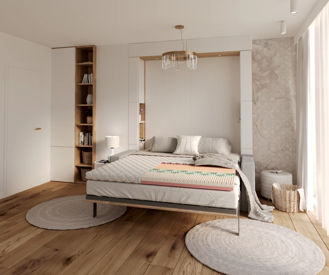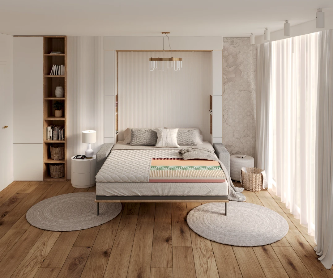 Es handelt sich um eine doppelseitige Matratzenauflage mit verschiedenen Härtegraden. Dank ihrer Konstruktion bietet sie jedem Teil des Körpers die richtige Unterstützung während der Nachtruhe.