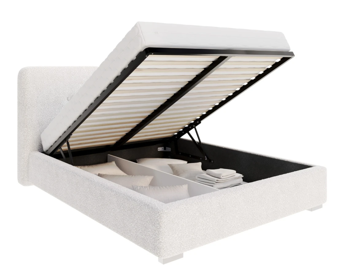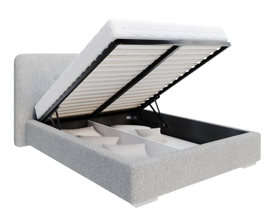 Jedes Bett sollte nicht nur bequem, sondern auch nützlich sein. Deshalb wurde beim Modell BEDRETTO durch die Verwendung eines Hubrahmens die Möglichkeit geschaffen, Platz für einen tiefen Bettzeugbehälter zu finden und diesen leicht zugänglich zu machen. So entsteht zusätzlicher Raum, der als Stauraum genutzt werden kann. Er haftet direkt am Boden, so dass schwere Gegenstände darin verstaut werden können, ohne dass die Gefahr besteht, dass der Boden einsinkt. So ist das BEDRETTO Bett nicht nur ein bequemer Schlafplatz, sondern auch ein praktisches und geräumiges Möbelstück.