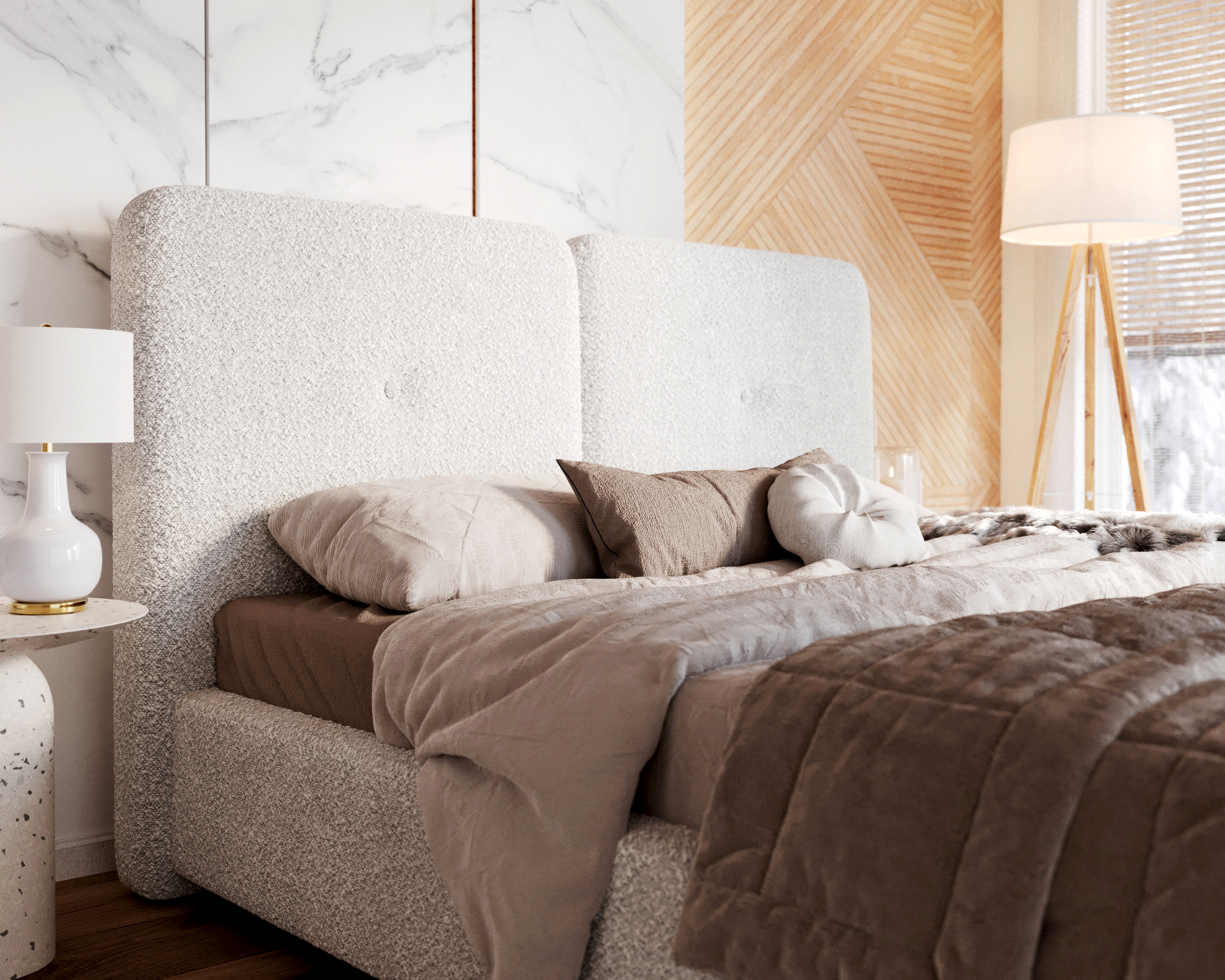 Damit ein Bett viele Jahre lang seinen Dienst tun kann, muss es aus soliden Materialien gefertigt sein. Deshalb haben wir für seine Konstruktion eine hochwertige Möbelplatte verwendet. Sie ist langlebig und widerstandsfähig gegen Verformung und Beschädigung. Die bei der Montage verwendeten Schrauben mit großem Durchmesser stabilisieren die Einheit und machen das Bett auch in den unruhigsten Nächten stabil und knarrfrei. Eine zusätzliche Versteifungsverbindung sorgt dafür, dass die Bettkomponenten gut miteinander verbunden sind.