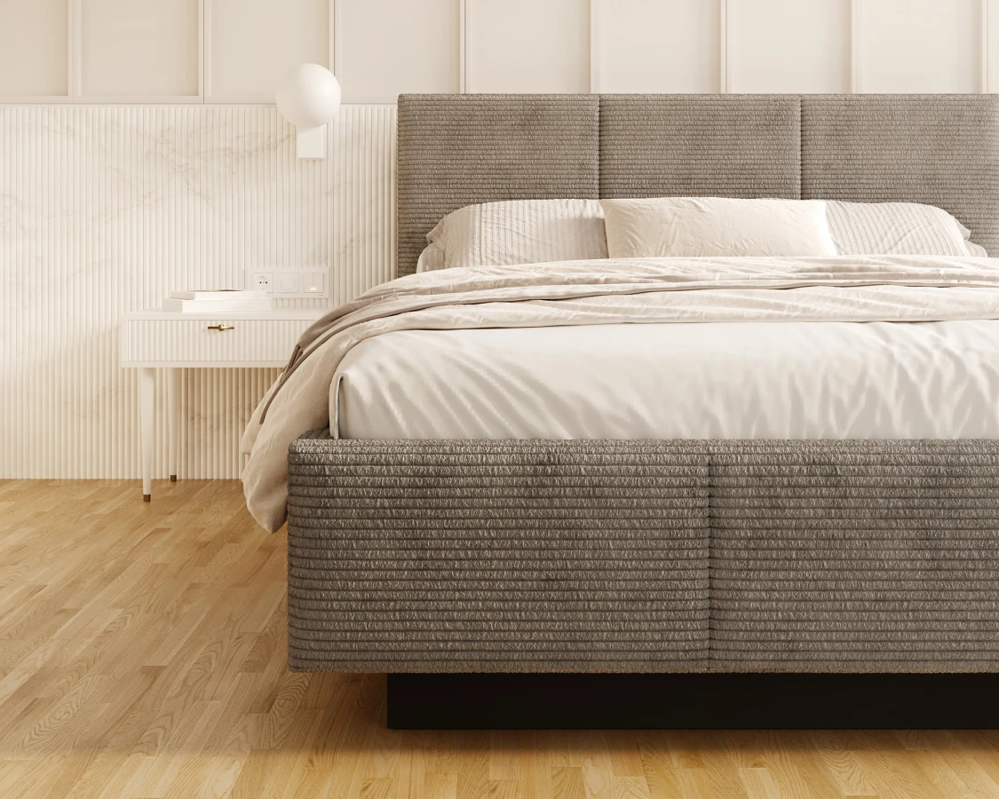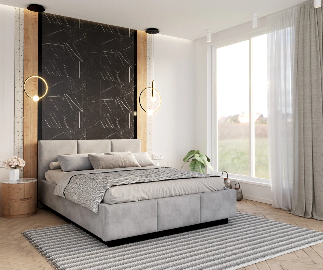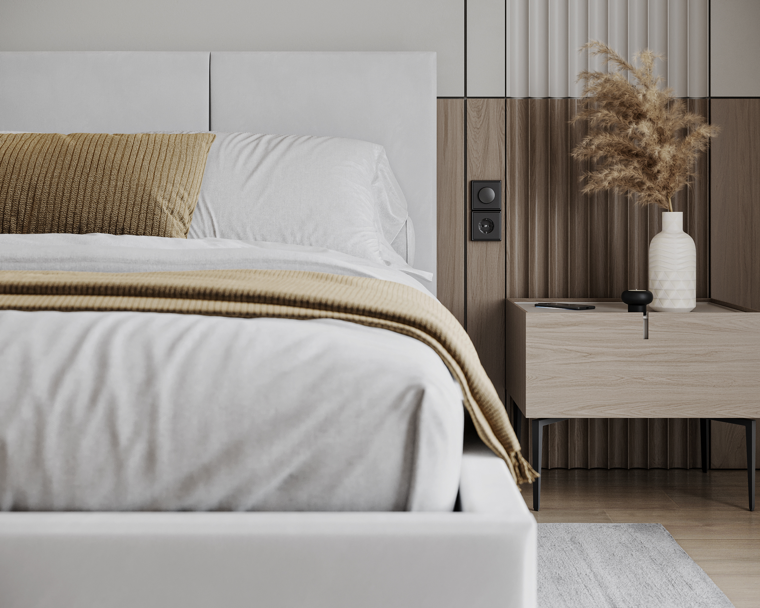 Das Schlafzimmer ist ein Raum, in dem jeder Moment eine Quelle positiver Emotionen sein sollte, und gleichzeitig muss er funktionell und ästhetisch ansprechend sein. Das Schwebebett AVEIRO erfüllt diese Anforderungen mit seinem modernen Design, seiner hohen Funktionalität und seiner attraktiven Verarbeitung, die sich perfekt in die Einrichtung jedes Schlafzimmers einfügt. Die Nacht auf diesem Bett zu verbringen, ist ein wahres Vergnügen, das viele positive Empfindungen und ästhetische Eindrücke vermittelt. AVIEIRO ist ein innovatives Möbelstück mit einem Rahmen, der den Eindruck erweckt, über dem Boden zu schweben. Auf diese Weise entsteht die Illusion von Leichtigkeit, als ob es keinen direkten Kontakt zum Boden hätte. Die Designer haben dafür gesorgt, dass die richtige Balance des Schwerpunkts für Stabilität sorgt - auch wenn der Benutzer auf der Bettkante sitzt. Das moderne Design von AVEIRO verleiht dem Schlafzimmer eine subtile Eleganz und einen einzigartigen Stil.