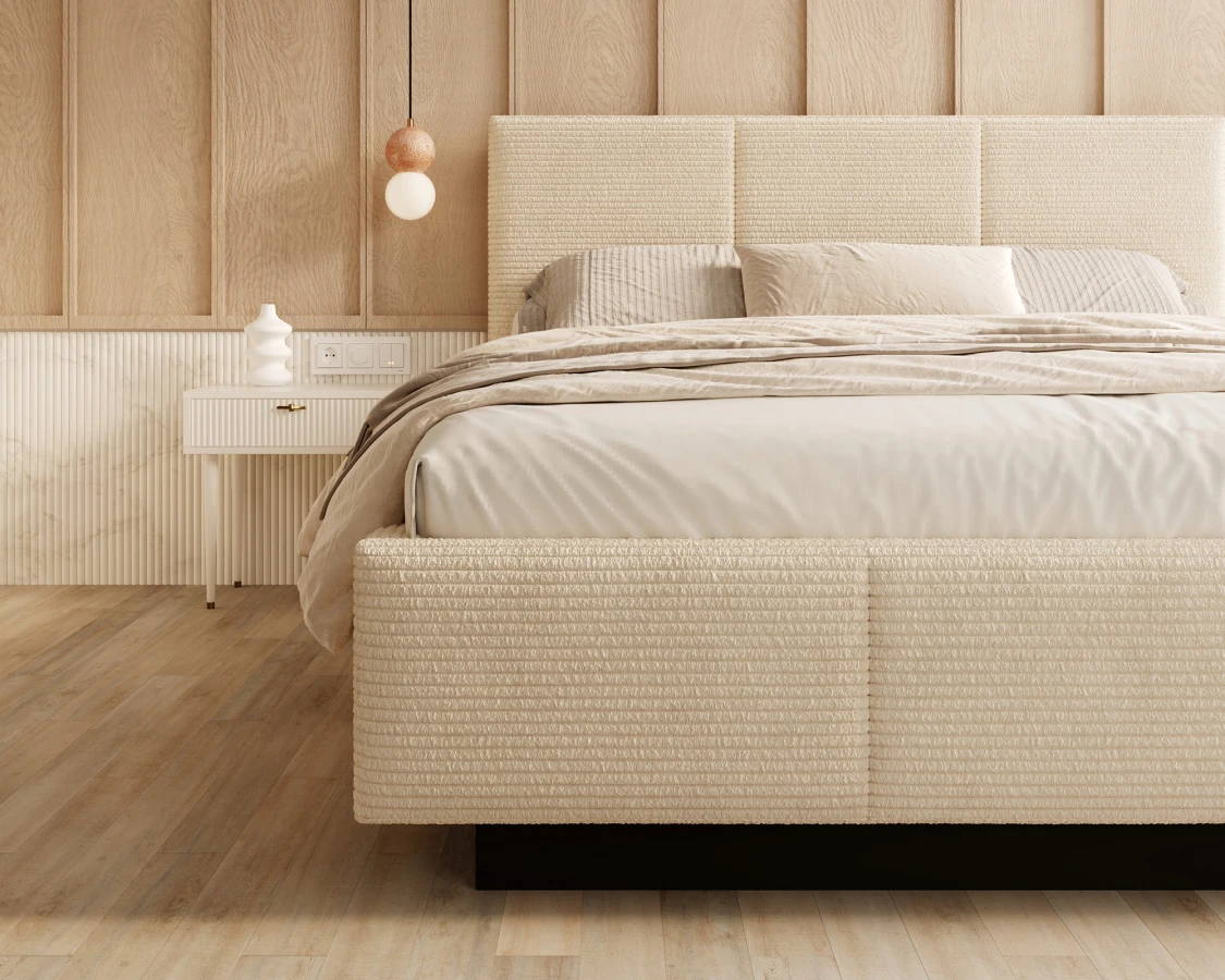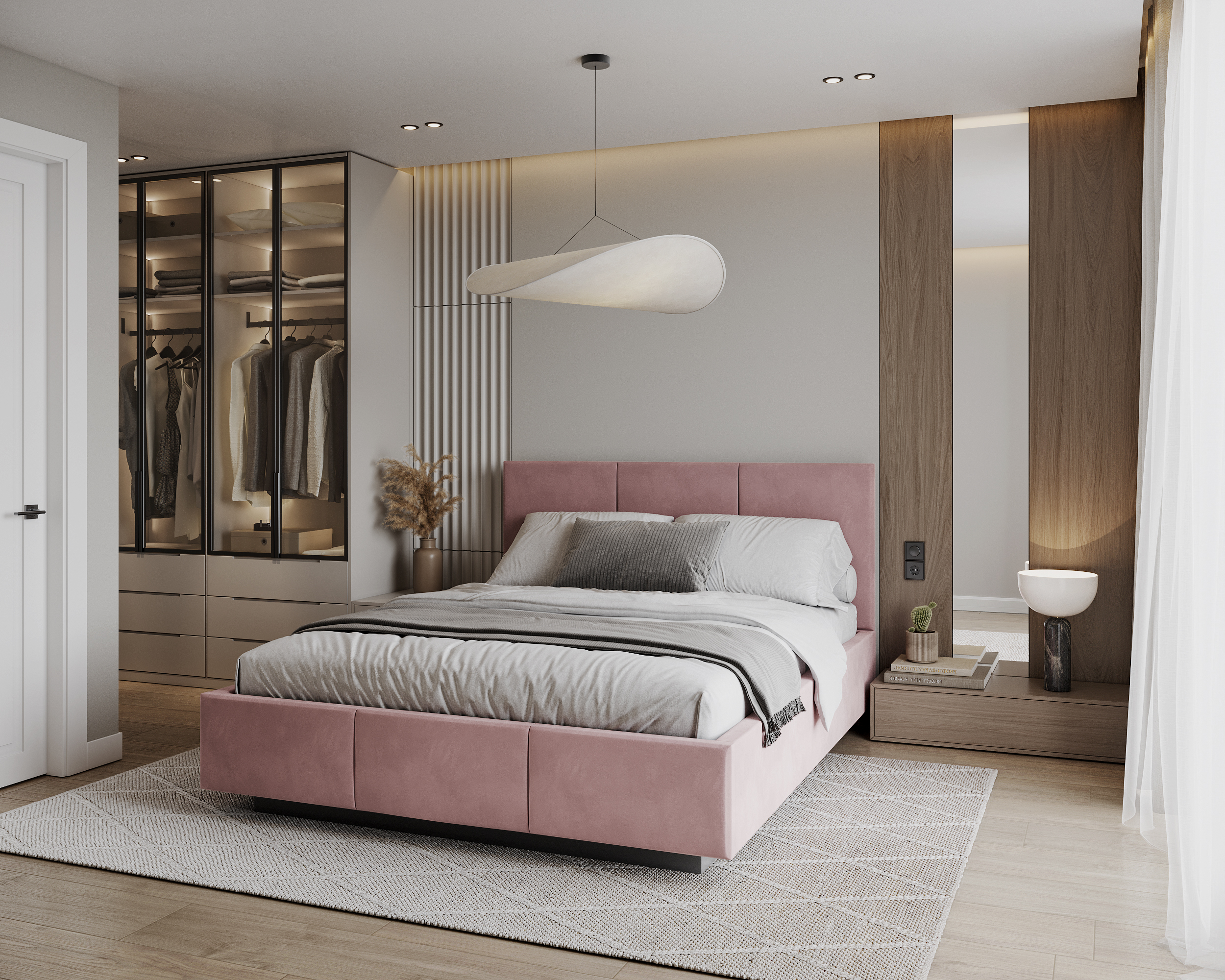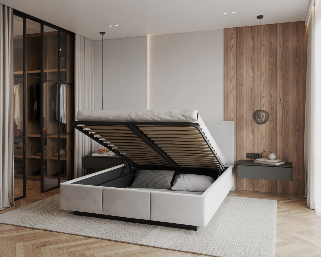 Das Schlafzimmer ist ein Raum, in dem jeder Moment eine Quelle positiver Emotionen sein sollte, und gleichzeitig muss er funktionell und ästhetisch ansprechend sein. Das Schwebebett AVEIRO erfüllt diese Anforderungen mit seinem modernen Design, seiner hohen Funktionalität und seiner attraktiven Verarbeitung, die sich perfekt in die Einrichtung jedes Schlafzimmers einfügt. Die Nacht auf diesem Bett zu verbringen, ist ein wahres Vergnügen, das viele positive Empfindungen und ästhetische Eindrücke vermittelt. AVIEIRO ist ein innovatives Möbelstück mit einem Rahmen, der den Eindruck erweckt, über dem Boden zu schweben. Auf diese Weise entsteht die Illusion von Leichtigkeit, als ob es keinen direkten Kontakt zum Boden hätte. Die Designer haben dafür gesorgt, dass die richtige Balance des Schwerpunkts für Stabilität sorgt - auch wenn der Benutzer auf der Bettkante sitzt. Das moderne Design von AVEIRO verleiht dem Schlafzimmer eine subtile Eleganz und einen einzigartigen Stil.