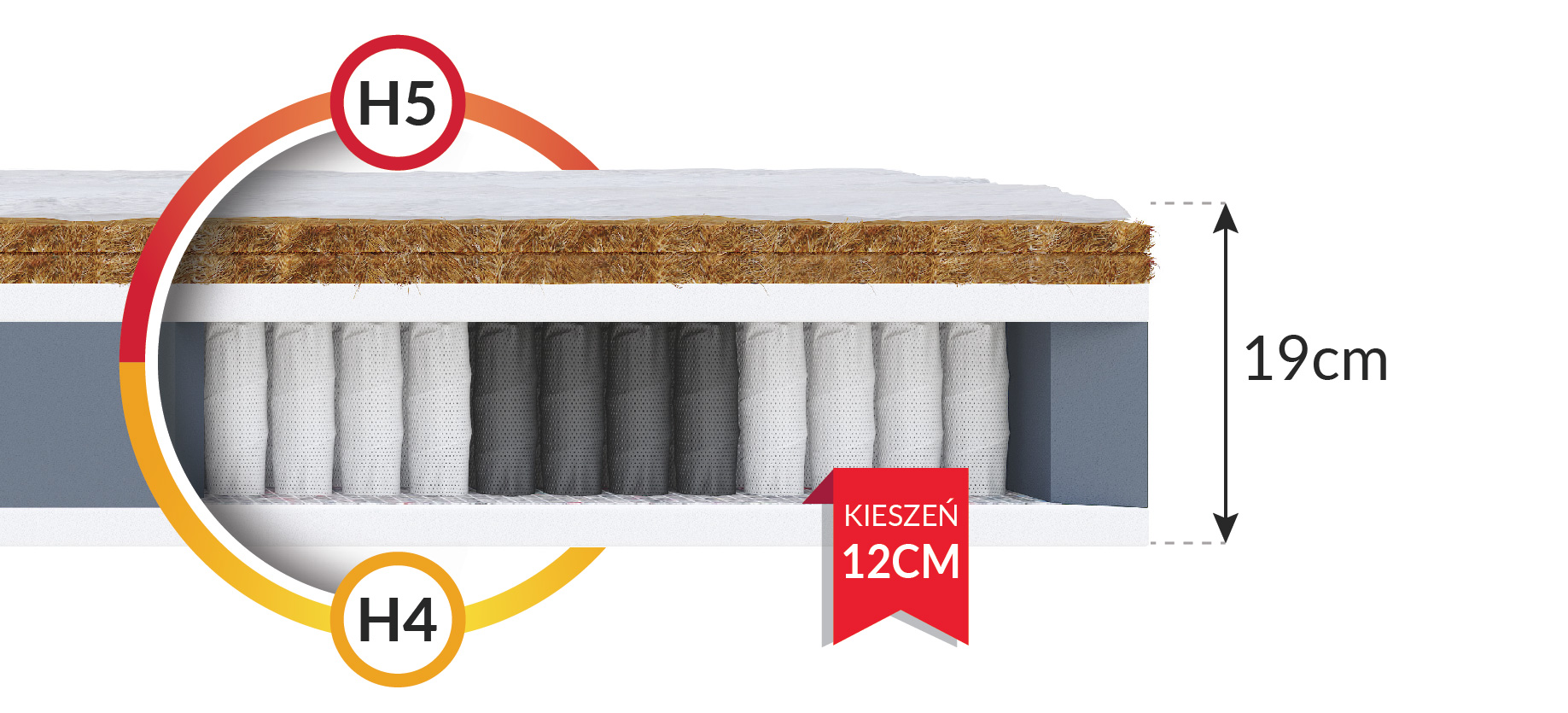 Die GRADO-Matratze ist mit fortschrittlichen Tonnentaschenfedern ausgestattet, die ihr eine Einteilung in sieben Härtezonen verleihen. Ihre Anzahl übersteigt die von Standard-Taschenfederkernmatratzen. Da sie unabhängig voneinander arbeiten, stören die Bewegungen des einen Schläfers den anderen nicht. Die mit der NanoHARD-Doppelhärtungstechnologie hergestellten Federn zeichnen sich durch eine außergewöhnliche Beständigkeit gegen Verformung und Eindrücken aus, was eine lange Lebensdauer garantiert.