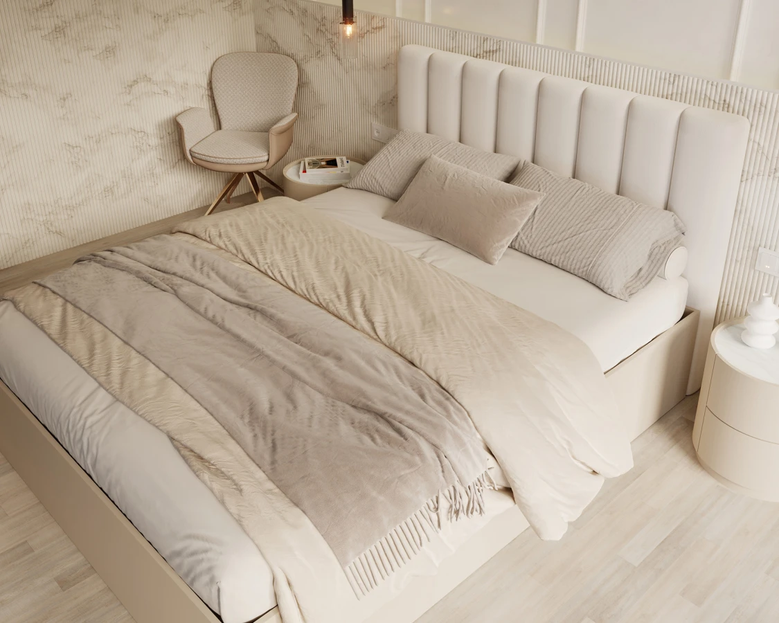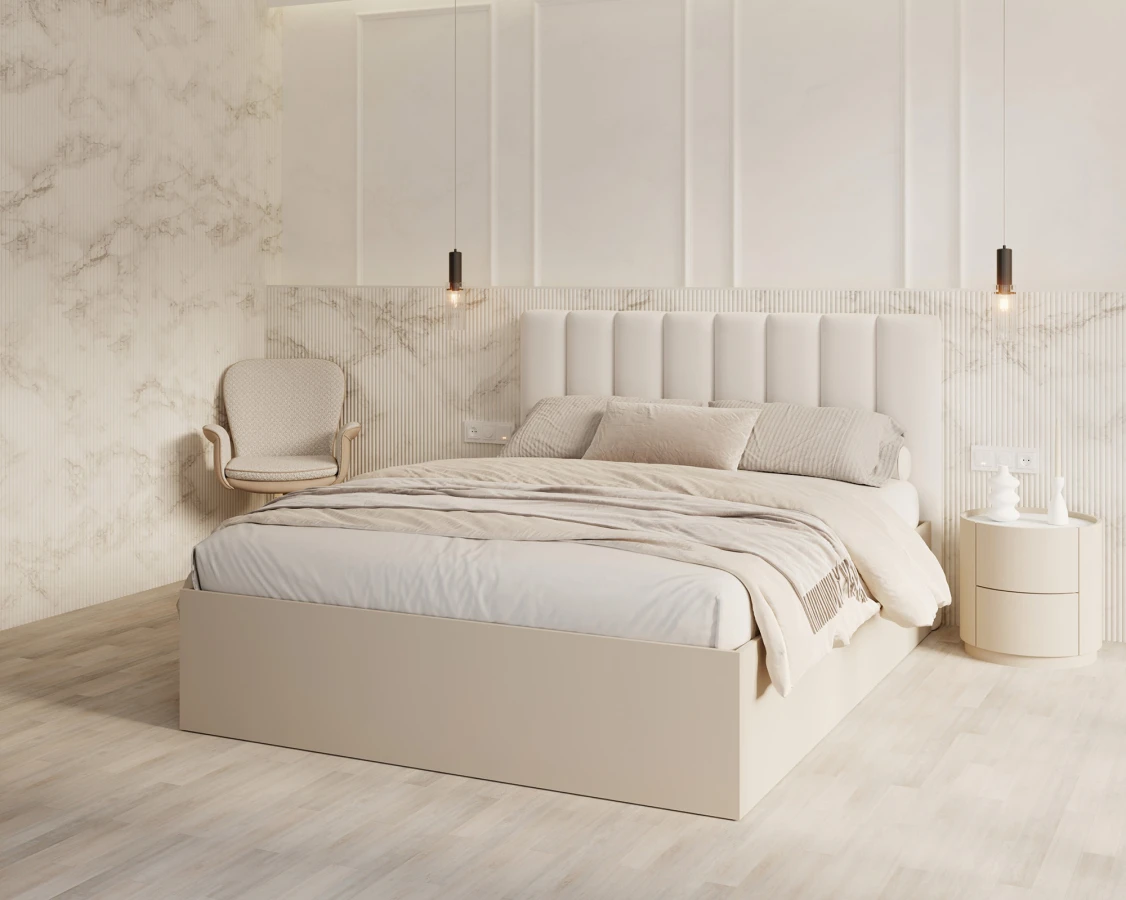 Das Modell GRENADA KASZMIR zeichnet sich durch seine elegante, weich gepolsterte Kopfstütze aus, die auf den ersten Blick auffällt. Ihre dezente Form schmückt nicht nur das Interieur, sondern bietet auch komfortablen Halt beim abendlichen Entspannen mit einem Buch oder vor dem Bildschirm. Die Polsterung besteht aus den hochwertigen Stoffen TRINITY, PARIS und BOUCLE - erhältlich in einer breiten Farbpalette, die von ruhigen Tönen bis hin zu ausdrucksstarken, dekorativen Farben reicht. Diese modernen Stoffe zeichnen sich durch ihre angenehme Textur und ihre Widerstandsfähigkeit gegen Fusseln und Abrieb aus, was sie zu einer guten Wahl für ein stark beanspruchtes Schlafzimmer macht. Die Basis des Bettes ist eine robuste MDF-Truhe in mattem Kaschmir - ihre schlichte Form steht in auffälligem Kontrast zum Kopfteil und bildet ein ästhetisch ansprechendes und vielseitiges Ganzes, das perfekt zu skandinavischen, klassischen oder modernen Stilen passt.