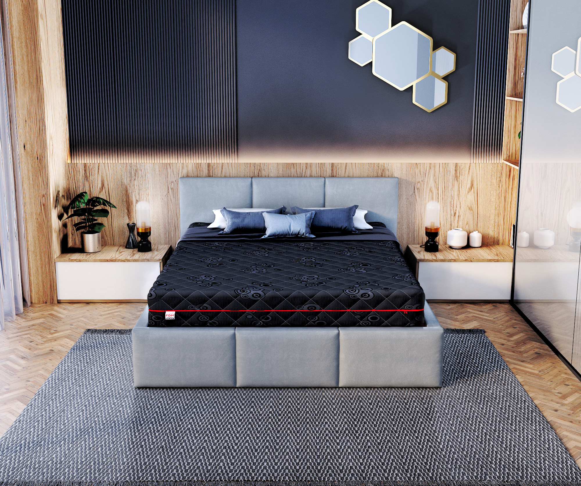 Der schwarze, mit Liebe zum Detail gesteppteJacquard-Matratzenbezug wurde aus hochwertigen, hypoallergenen Materialien hergestellt. Sein Hauptzweck ist es, die Matratze zu schützen und dem Benutzer Komfort zu bieten. Dank Bezügen wie Jacquard können wir die Lebensdauer der Matratze erheblich verlängern. Der Jacquard-Bezug garantiert außergewöhnliche Weichheit, Frische und unglaublichen Schlafkomfort. Er zeichnet sich nicht nur durch seine hervorragenden Eigenschaften, sondern auch durch seinen einzigartigen Stil und seine Eleganz aus. Das verwendete Material sorgt für eine gute Belüftung und einen optimalen Luftstrom in der Matratze. Dank dieser Eigenschaften ist sie eine gute Wahl für Allergiker. Der Bezug ist in einer Höhe von 20 cm oder 26 cm erhältlich.