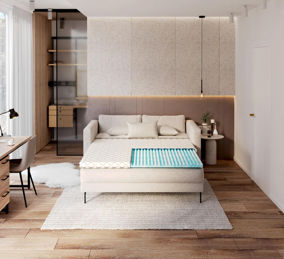Wenn die Matratze, auf der Sie schlafen, für Sie nicht fest genug ist, brauchen Sie sie nicht durch eine neue zu ersetzen - legen Sie einfach eine Malta-Festigkeitsauflage auf. Sie zeichnet sich durch einen Härtegrad von H4 aus, dem höchstmöglichen. Die Matratzenauflage Malta Foam ist eine hervorragende Lösung für Paare, die auf einer Matratze schlafen, deren Matratze nur für einen der Partner zu weich ist - die Auflage sollte auf der Seite des Partners platziert werden. Das Produkt eignet sich auch für die Verbesserung des Schlafkomforts auf Schlafsofas, Sofas und Ecksofas. Der Topper verhärtet nicht nur die Oberfläche eines bereits "gemachten" Bettes, sondern hilft auch, sie auszugleichen.
