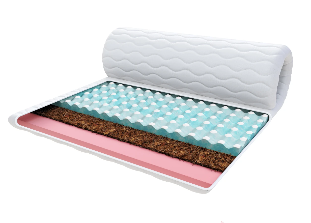 Die Kokosmatte, die sich in der Matratzenauflage befindet, hat ebenfalls antiallergische Eigenschaften. Sie wird aus Kokosfasern hergestellt und ist atmungsaktiv, feuchtigkeits- und verformungsbeständig. Sie verhindert das Wachstum von Pilzen und Hausstaubmilben und schützt gleichzeitig vor übermäßiger Transpiration. Außerdem härtet es die gesamte Struktur aus und macht sie steif.