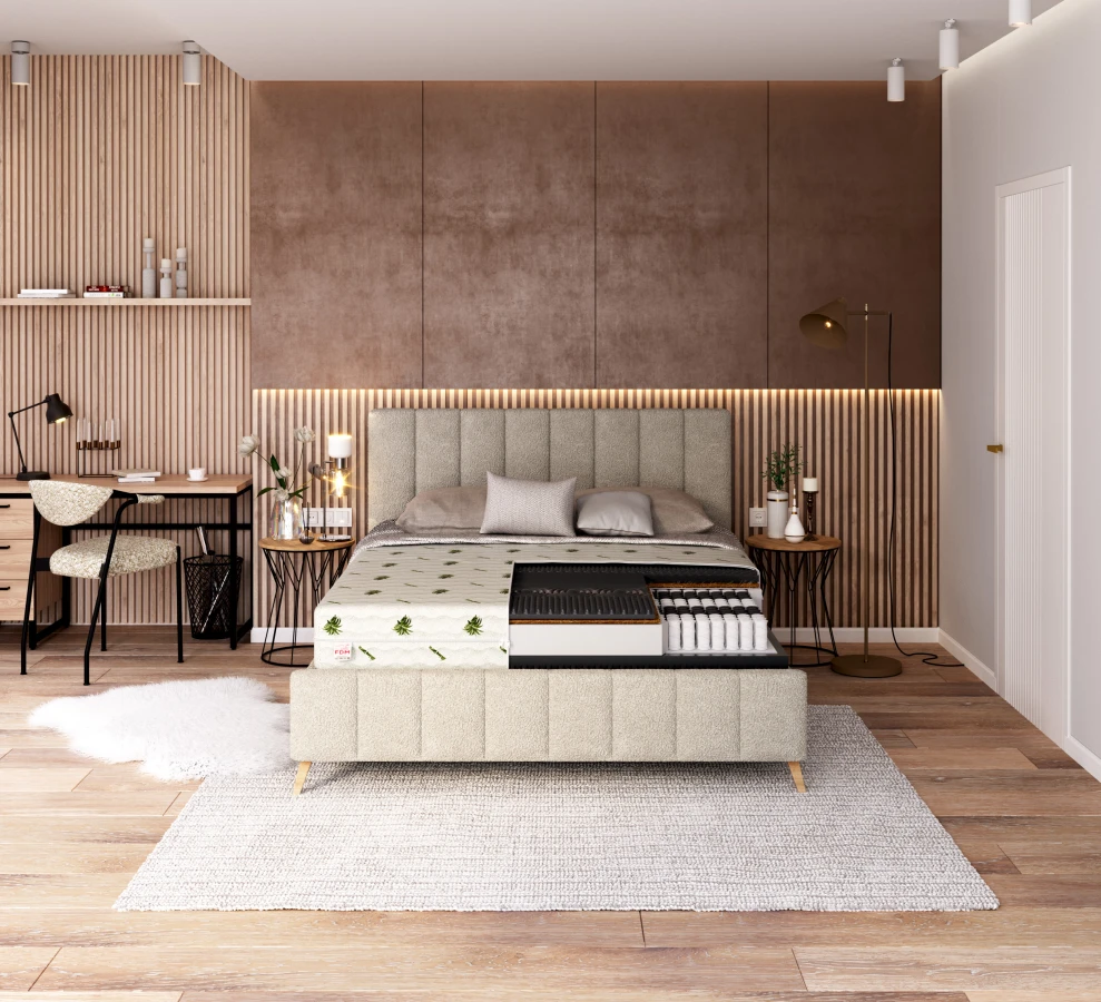 Die MORK-Taschenmatratze besteht aus hochwertigen Komponenten und bietet eine angemessene Unterstützung für Ihre Wirbelsäule und eine passive Massage für Ihre Rückenmuskulatur. Dank ihr verbringen Sie die Nacht in Komfort und wachen am Morgen ohne Schmerzen und Müdigkeit auf.