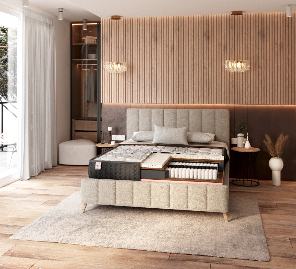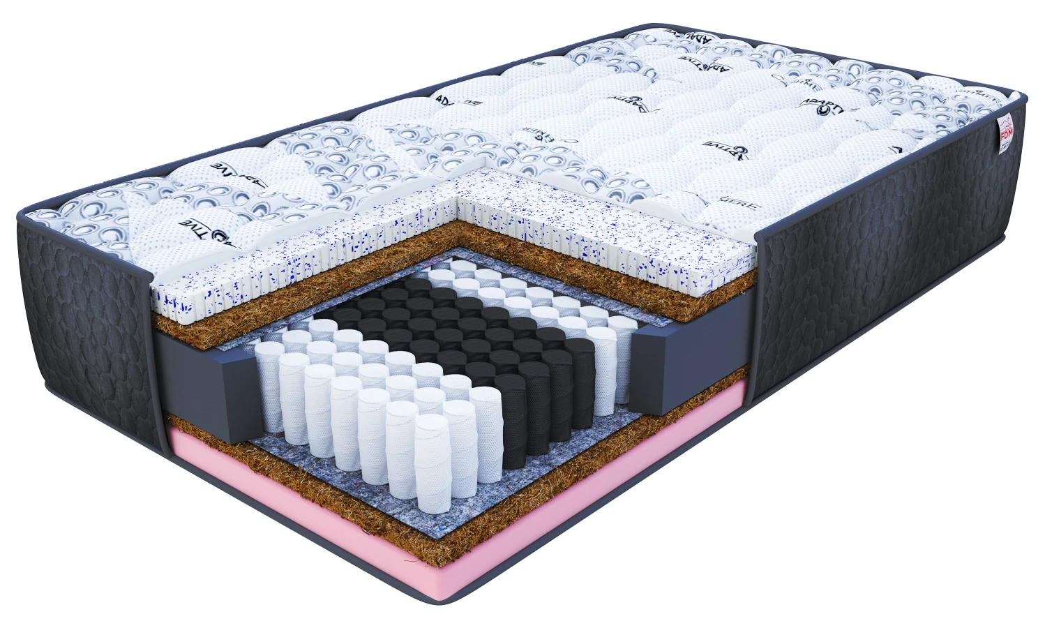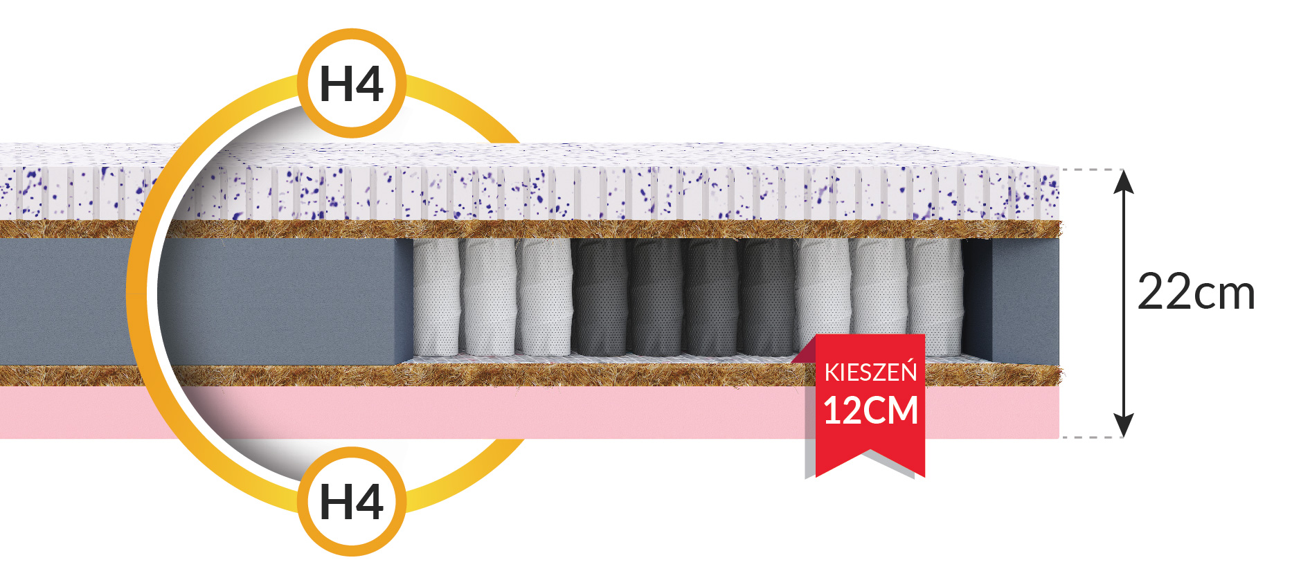 Eine Matratze von außergewöhnlicher Qualität mit einzigartigen Kühleigenschaften. Die in ihr angewandten Lösungen machen jede Nacht zu etwas Besonderem, und Sie werden den Morgen ohne Beschwerden begrüßen. Sie besteht aus hochwertigen Materialien wie ökologischem Kokos, langlebigen Taschenfedern oder elastischem Schaum und innovativem Latex, die eine angenehme Erholung und Entspannung in tropischen Nächten garantieren.