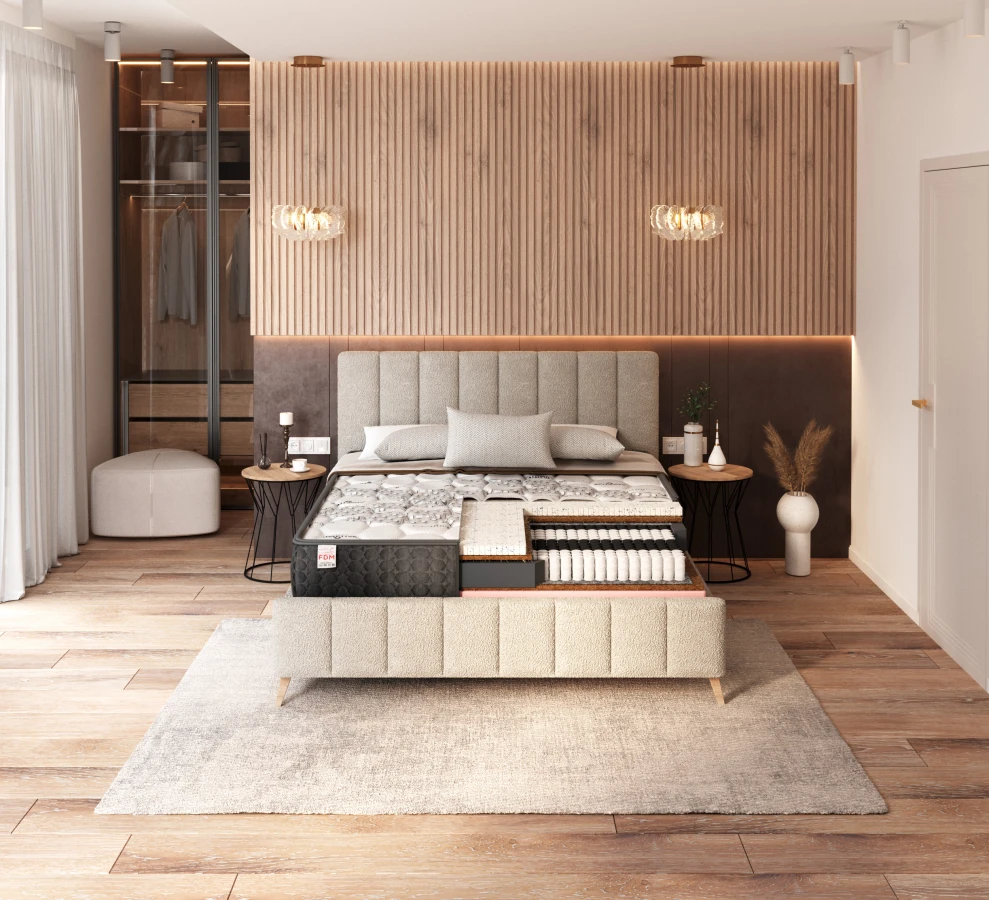 - Geringere Feuchtigkeitsansammlung - trockenere Schlafumgebung: Die Feuchtigkeit dringt nur bis zu einer Schicht in die Matratze ein, so dass die Matratze die Feuchtigkeit nicht tief in die Matratze "zieht" und schneller trocknet.