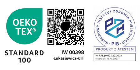 Die Matratze ist nach OEKO-TEX® Standard 100 - Klasse I zertifiziert, der höchsten Sicherheitsstufe in dieser Kategorie. Dies ist eine Garantie dafür, dass alle bei der Herstellung verwendeten Komponenten - von den Schaumstoffen über die Klebstoffe bis hin zum Stoff des Bezugs, den Nähten und dem Reißverschluss - auf Schadstoffe getestet wurden und bei der Verwendung der Matratze absolut sicher sind. Wenn Sie diese Matratze kaufen, entscheiden Sie sich für eine Qualität, die durch strenge Normen bestätigt wird - ideal für alle, die Wert auf die Gesundheit und Sicherheit ihrer Liebsten legen.