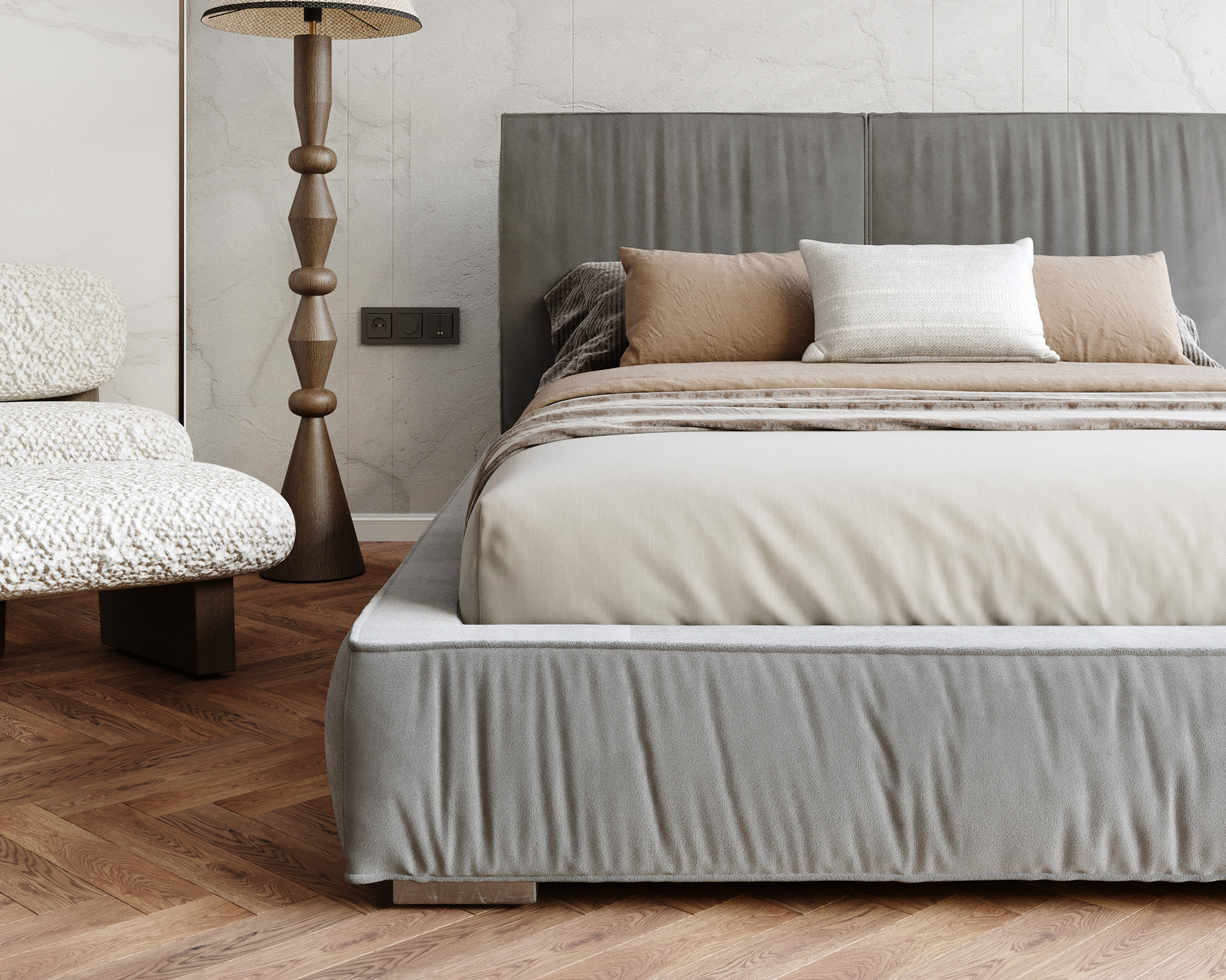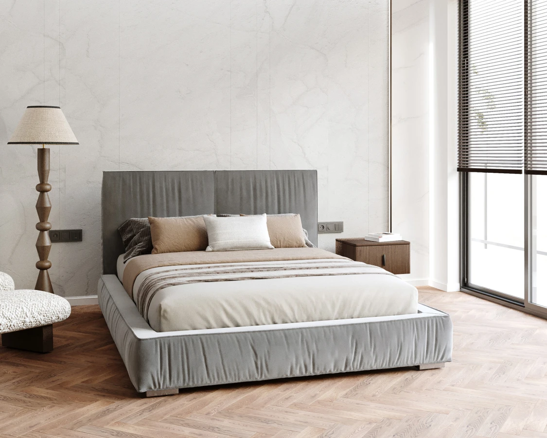 Statt vieler Nähte finden Sie nur eine zentrale, elegante vertikale Naht am hohen Kopfteil, die die Linie des Bettes sanft akzentuiert, ohne übermäßig zu dekorieren. ADORE ist ein Bett, das nicht nur gut aussieht, sondern vor allem Komfort auf höchstem Niveau bietet - jeden Tag und jede Nacht. Ideal für ein Schlafzimmer, in dem Stil, Qualität und Komfort zählen. Geräumiger Stauraum für Bettzeug und Accessoires, solide Konstruktion und originelles Design sind die Vorteile des Polsterbettes ADORE.
