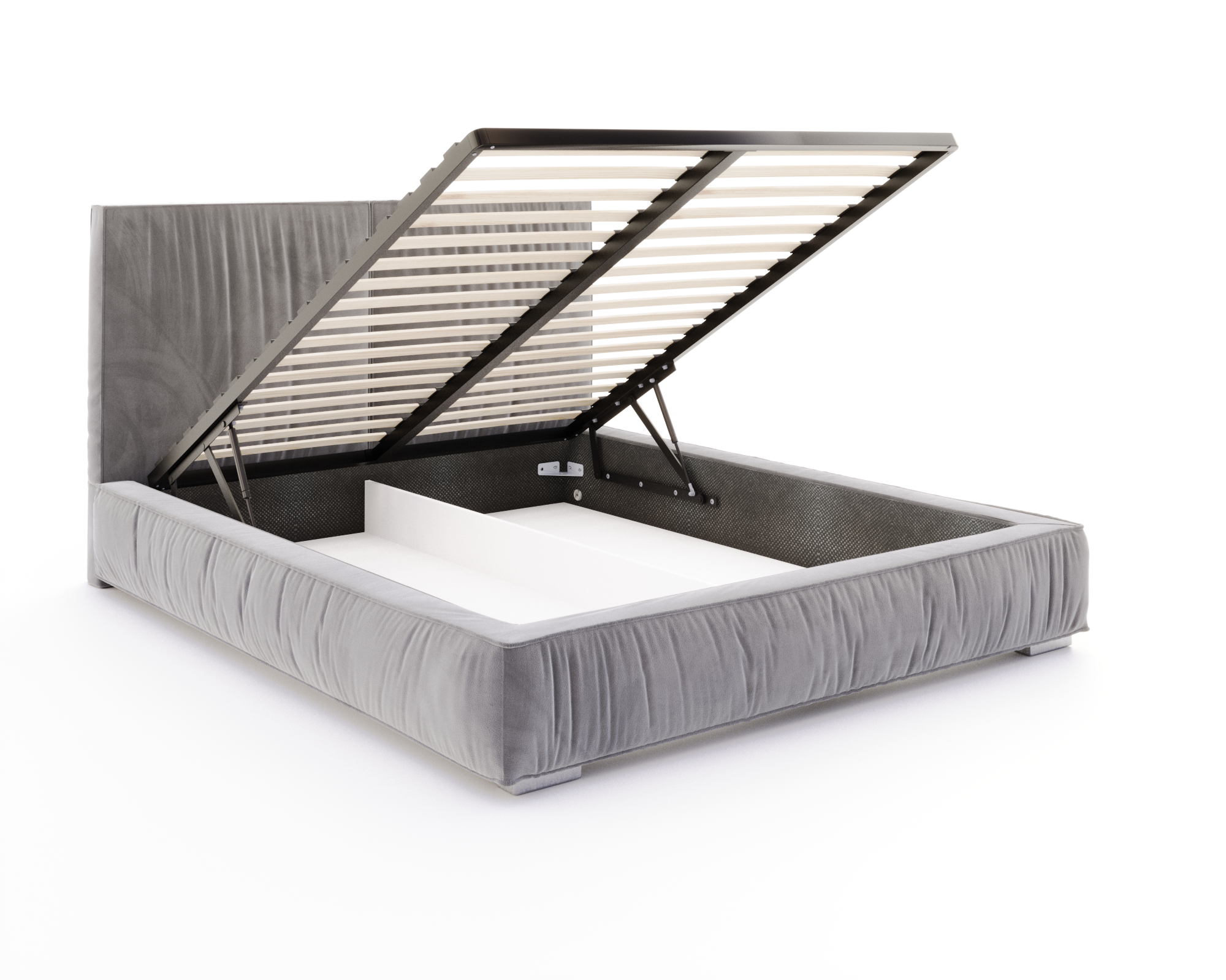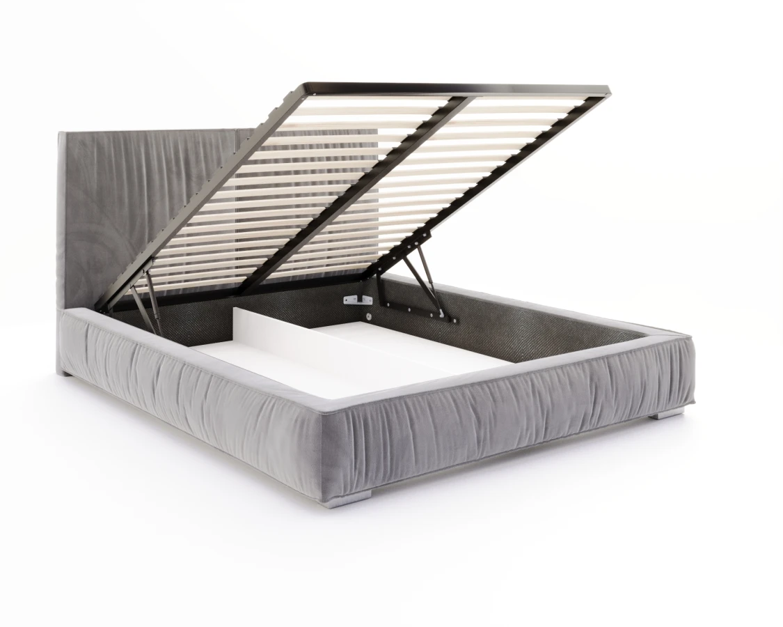 Das Modell ADORE ist nicht nur formschön, sondern auch voll funktional. Im Inneren des Kastens befindet sich ein geräumiger Bettzeugbehälter, der über einen Hubrahmen auf Gasflaschen zugänglich ist. Die solide Möbelplattenkonstruktion garantiert Stabilität, Langlebigkeit und leisen Betrieb - auch nach Jahren intensiver Nutzung. Der Container ist der Länge nach in zwei Teile geteilt, was die Verwaltung des Stauraums für Schlafzimmerzubehör erleichtert. An der Vorderseite des Bettes befinden sich zwei Zierfüße, die nicht nur eine dekorative, sondern auch eine praktische Funktion haben - sie heben die gesamte Struktur leicht an und sorgen für optische Leichtigkeit. Dies sind Details, die den Charakter des Möbels ausmachen und ins Auge fallen.
