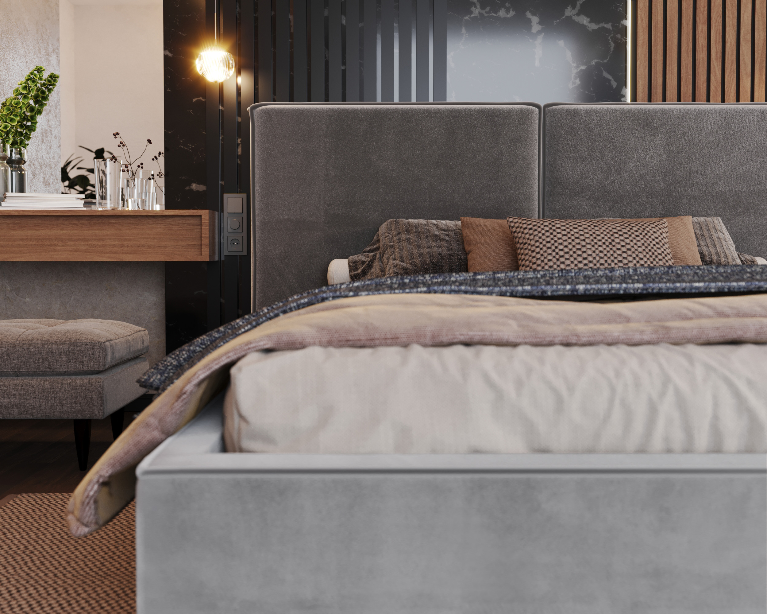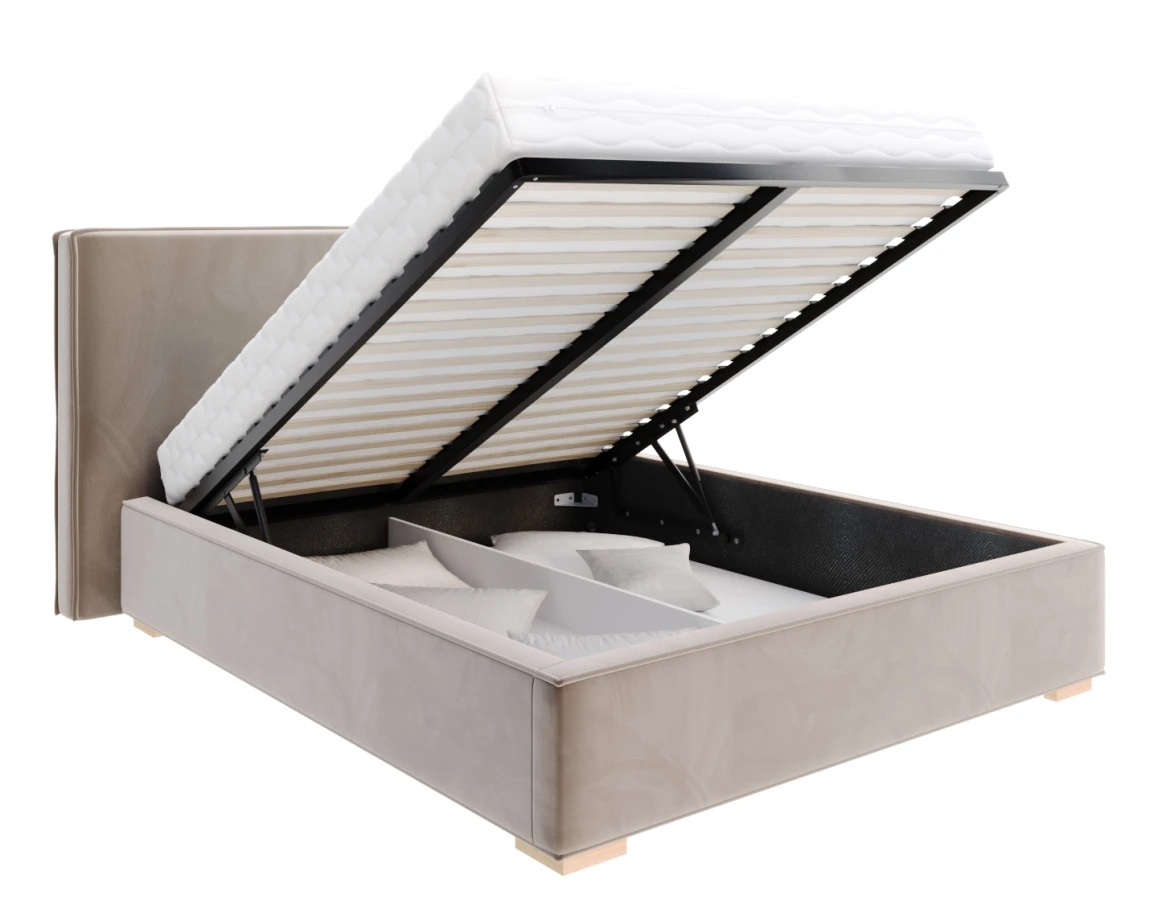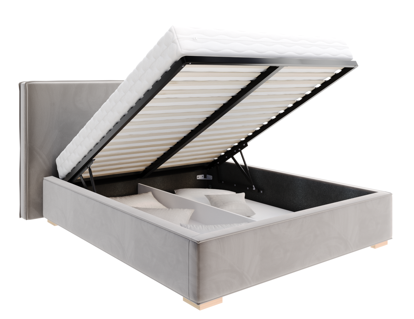 Das Modell DOVER ist mit einem geräumigen Stauraum für das Bettzeug ausgestattet, in dem auch andere Dinge wie Decken, Kissen oder saisonale Kleidung aufbewahrt werden können. So lässt sich das Schlafzimmer aufgeräumt halten und der Platz effizient nutzen. Der Zugang zum Schrank wird durch einen Heberahmen mit Gasdruckzylindern erleichtert, der das Öffnen und Schließen des Schranks leicht und bequem macht. Außerdem schließt der Boden der Aufbewahrungsbox bündig mit dem Boden ab, so dass auch schwerere Gegenstände gelagert werden können, ohne dass die Gefahr besteht, dass sich der Boden verformt.