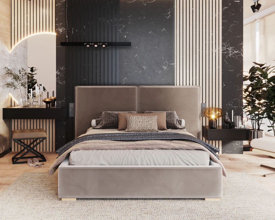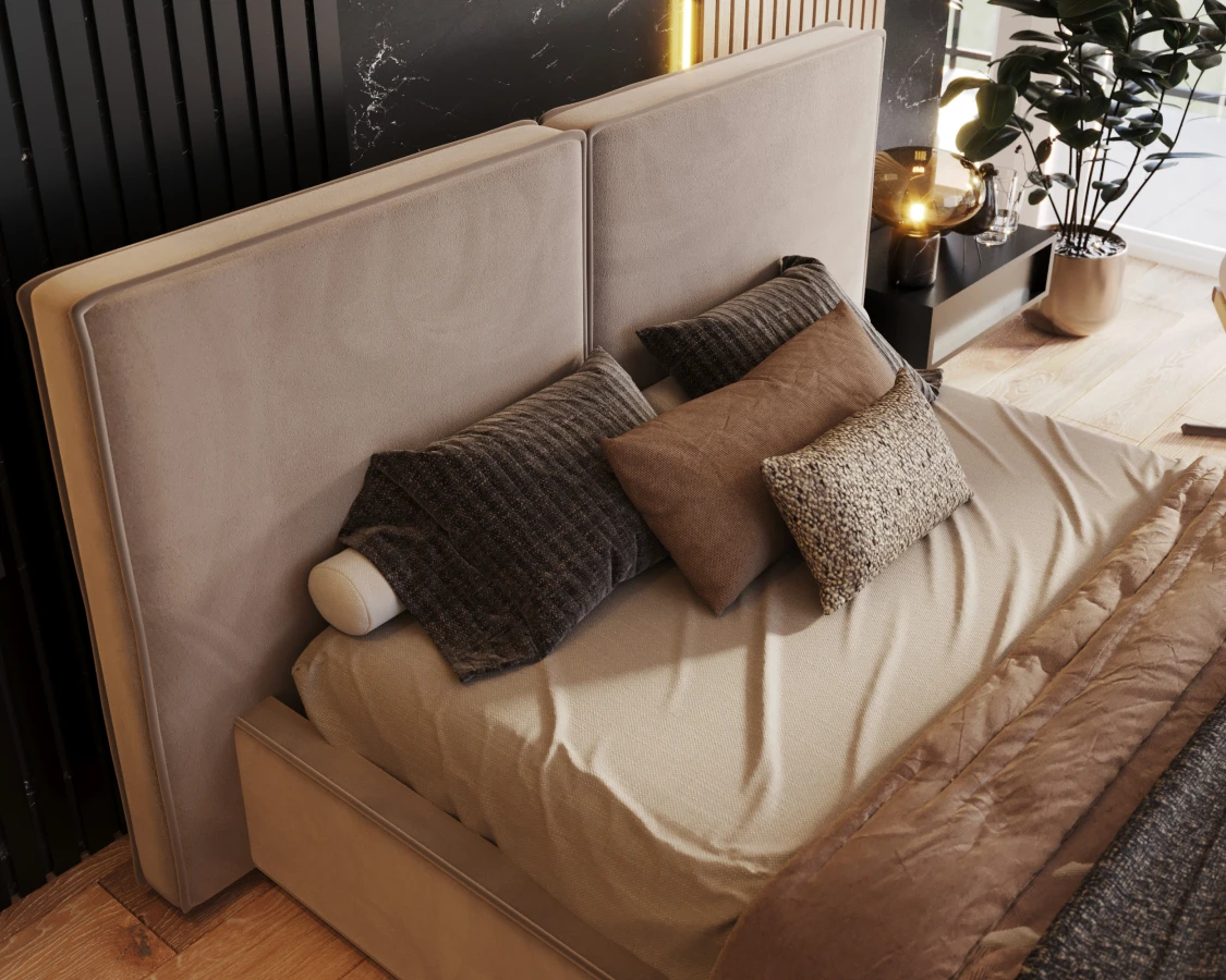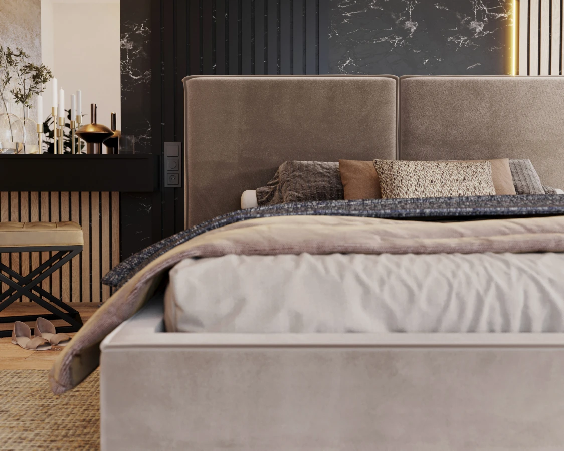Das Modell DOVER ist mit einem geräumigen Stauraum für das Bettzeug ausgestattet, in dem auch andere Dinge wie Decken, Kissen oder saisonale Kleidung aufbewahrt werden können. So lässt sich das Schlafzimmer aufgeräumt halten und der Platz effizient nutzen. Der Zugang zum Schrank wird durch einen Heberahmen mit Gasdruckzylindern erleichtert, der das Öffnen und Schließen des Schranks leicht und bequem macht. Außerdem schließt der Boden der Aufbewahrungsbox bündig mit dem Boden ab, so dass auch schwerere Gegenstände gelagert werden können, ohne dass die Gefahr besteht, dass sich der Boden verformt.