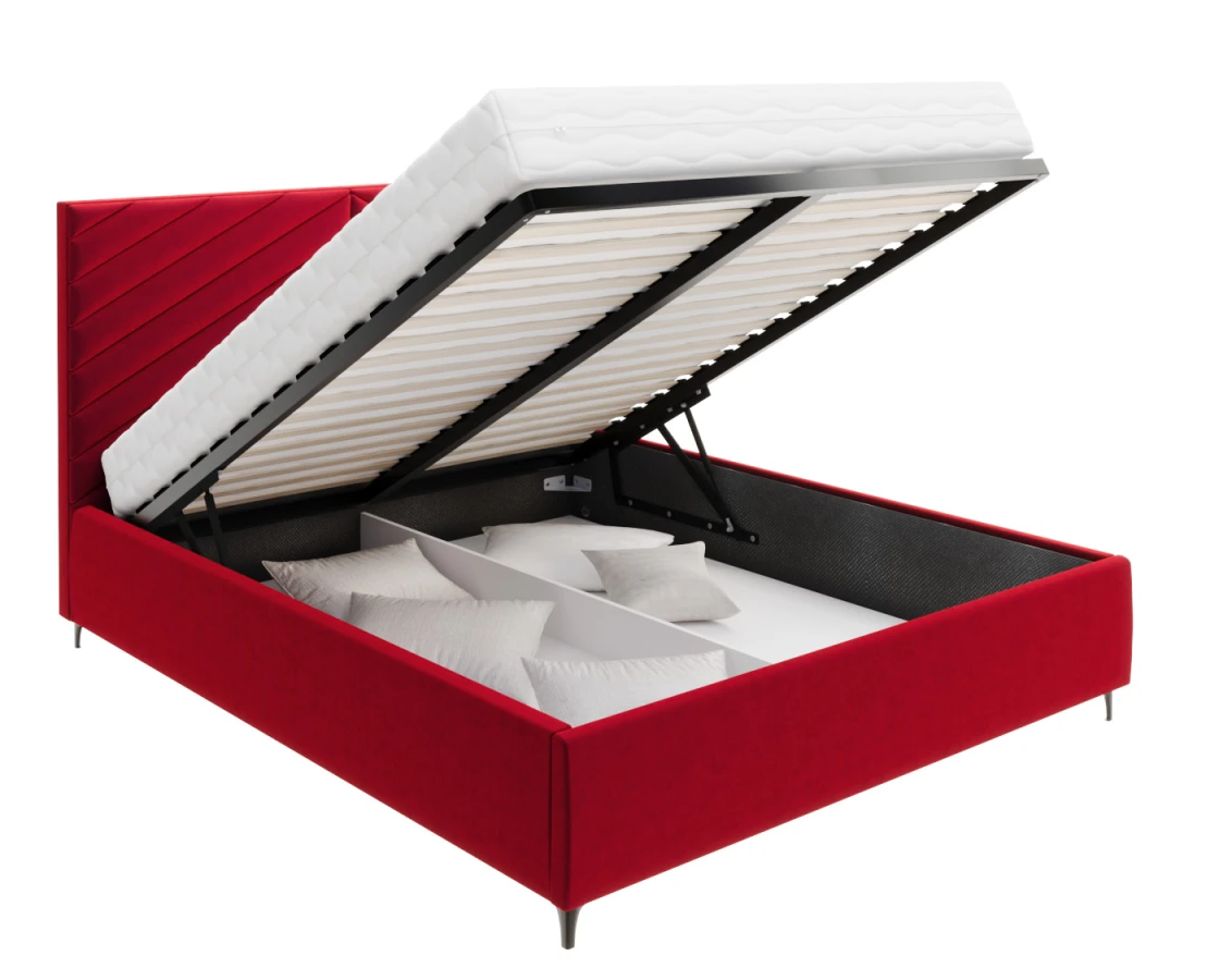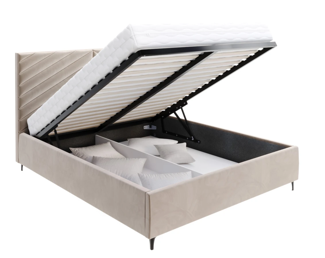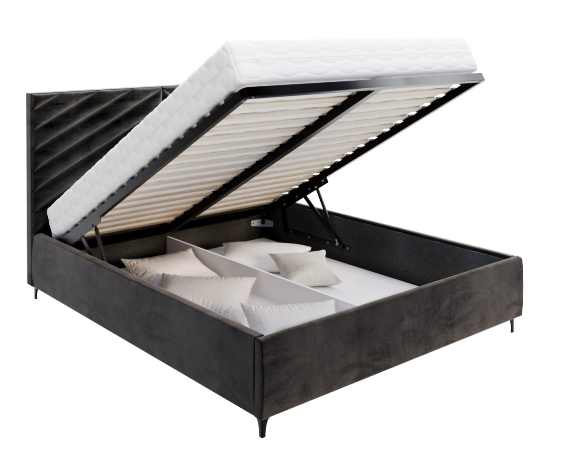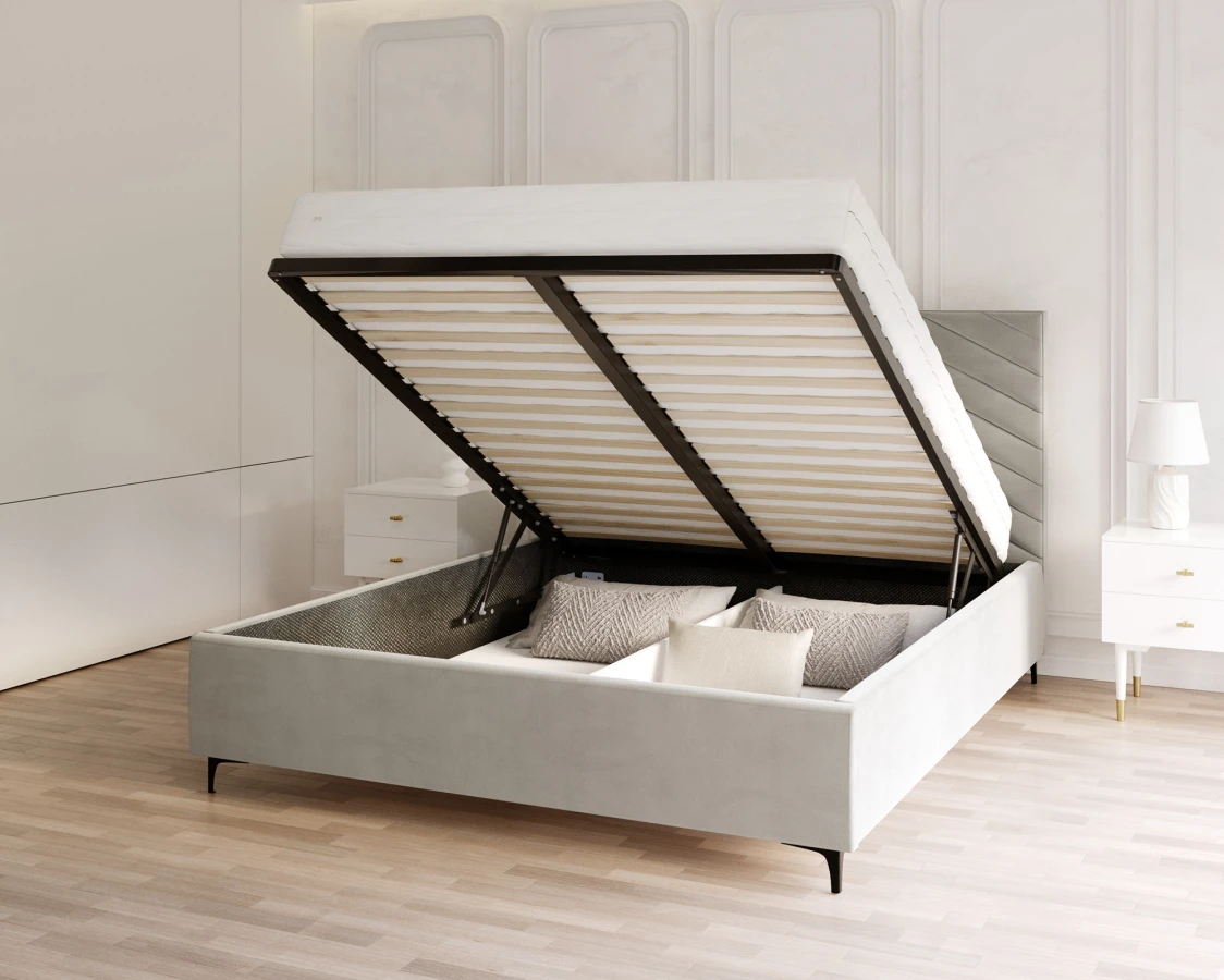 Die Funktionalität des Bettes ELEGANTE ist das geräumige Bettzeugfach, das eine praktische Aufbewahrungslösung bietet. Es ist ideal für die Aufbewahrung von Bettzeug, Decken, saisonaler Kleidung oder anderen Dingen. Der Hebemechanismus des Rahmens, der durch Gasdruckfedern unterstützt wird, macht die Nutzung dieses Raums einfach und gewährleistet eine leichte Handhabung und Stabilität. Der robuste Boden des Containers haftet am Boden, so dass auch schwerere Gegenstände ohne Beschädigungsgefahr gelagert werden können.