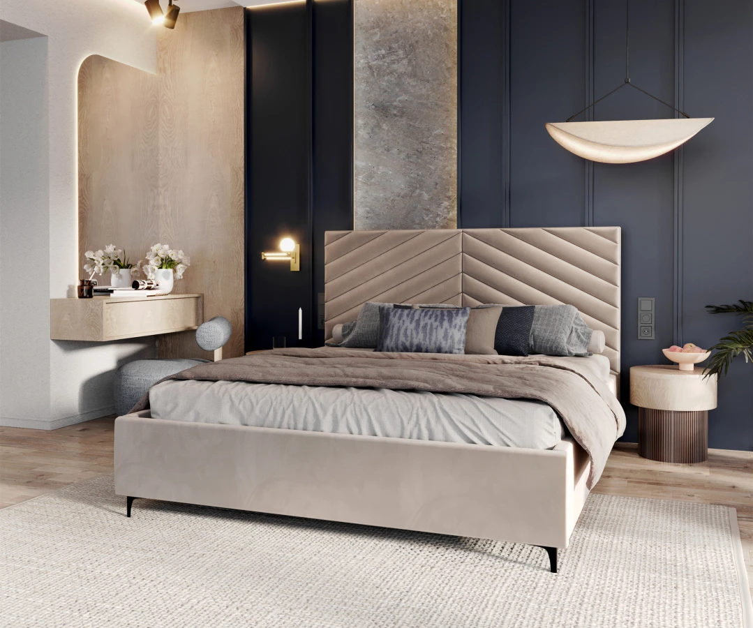 Ein komfortables und maßgeschneidertes Bett ist die Garantie für einen erholsamen Schlaf. Das Modell ELEGANTE verbindet Funktionalität und Eleganz und wirkt sich nicht nur auf die Schlafqualität, sondern auch auf die Ästhetik des Schlafzimmers aus. Durch sein klassisches Design und seine modernen Lösungen passt es sowohl zu minimalistischen als auch zu modernen Stilen und verleiht der Einrichtung einen einzigartigen Charakter. Dieses Bett ist die perfekte Kombination aus Komfort und elegantem Design.