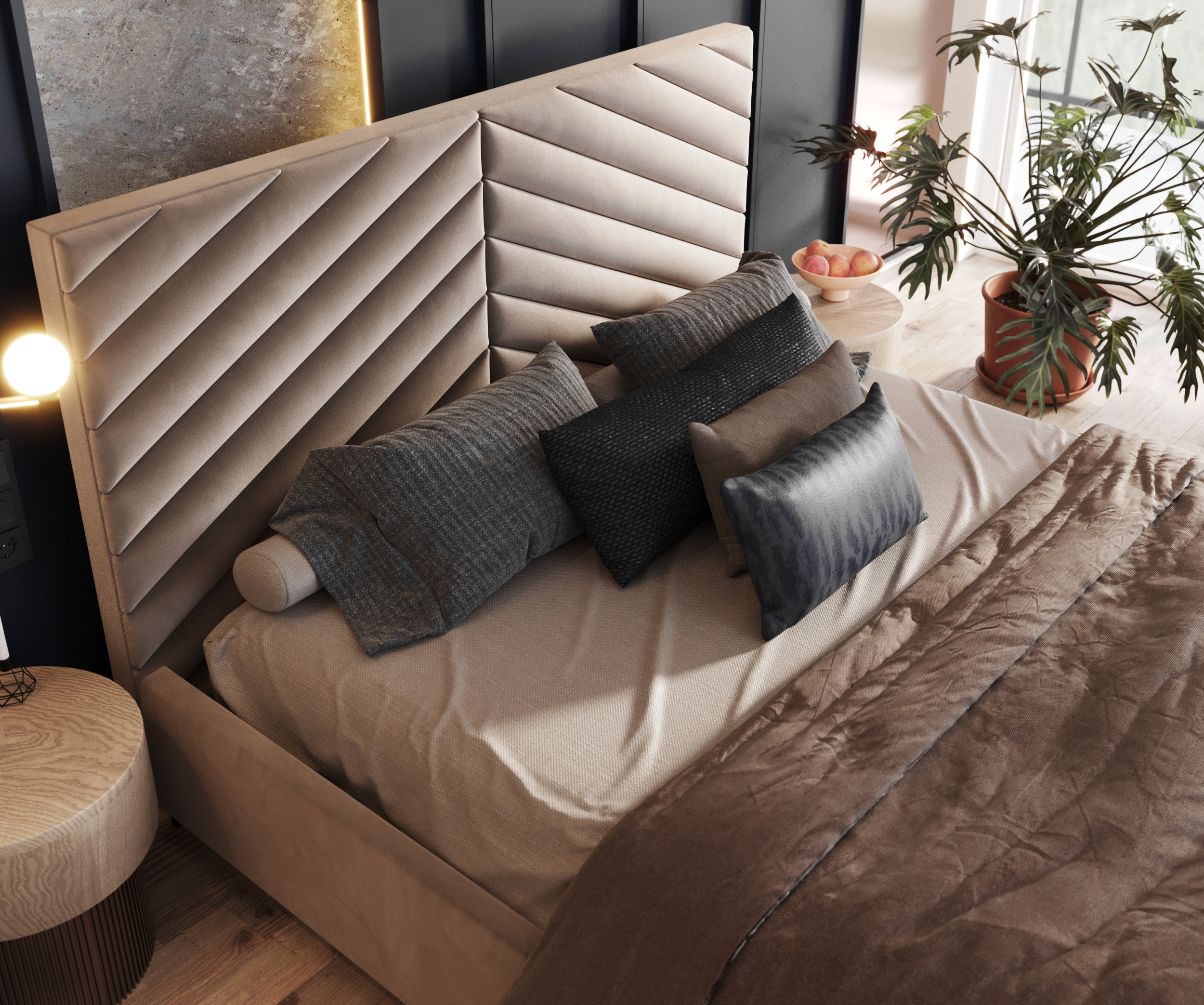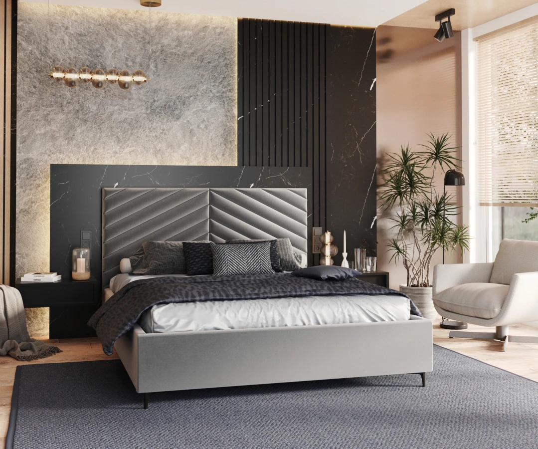 Das Bett ELEGANTE ist aus einer hochwertigen Möbelplatte gefertigt, die sich nicht verformt und eine lange Stabilität gewährleistet. Die soliden Verbindungen der Bauteile mit Schrauben großen Durchmessers garantieren Langlebigkeit und eliminieren unerwünschte Geräusche wie Knarren. Alle Details wurden sorgfältig entworfen, um modernes Design mit Funktionalität zu verbinden. Dieses Modell ist eine Investition in Komfort, Ästhetik und Langlebigkeit, die auch die Erwartungen der anspruchsvollsten Nutzer erfüllt.