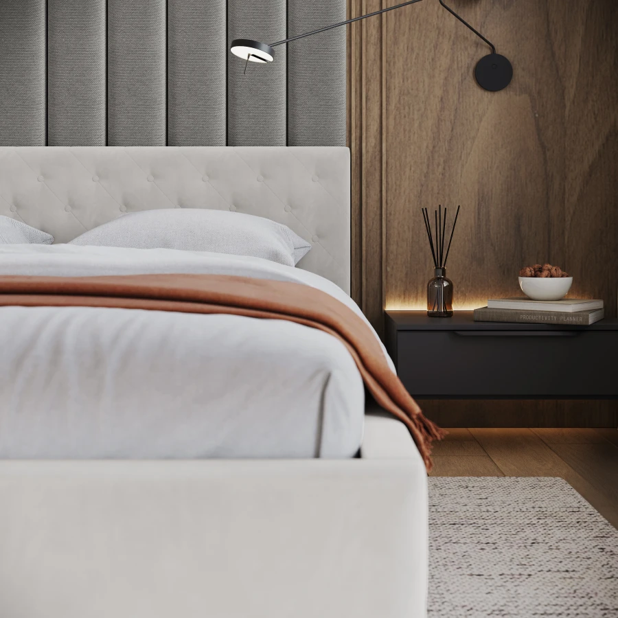 Das moderne Bett KALIFORNIA vereint die von seinen Nutzern am meisten gewünschten Eigenschaften: Es ist designorientiert, aus langlebigen Materialien gefertigt und bequem. Durch die elegante Linienführung passt dieses Modell perfekt zu einer Vielzahl von Einrichtungsstilen und verleiht dem Schlafzimmer einen einzigartigen Charme. Originelle Materialien und Werkstoffe machen es zu einem der beliebtesten Möbelstücke in unserem Angebot.