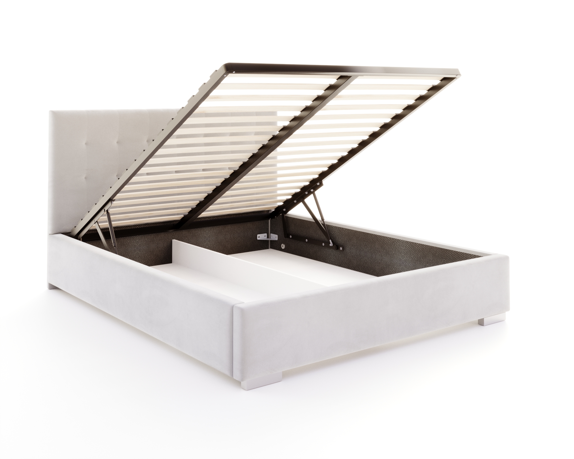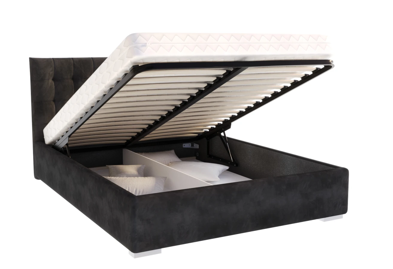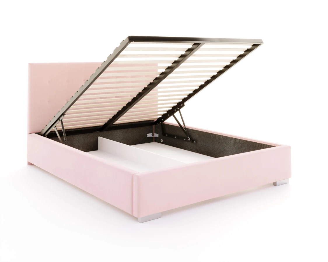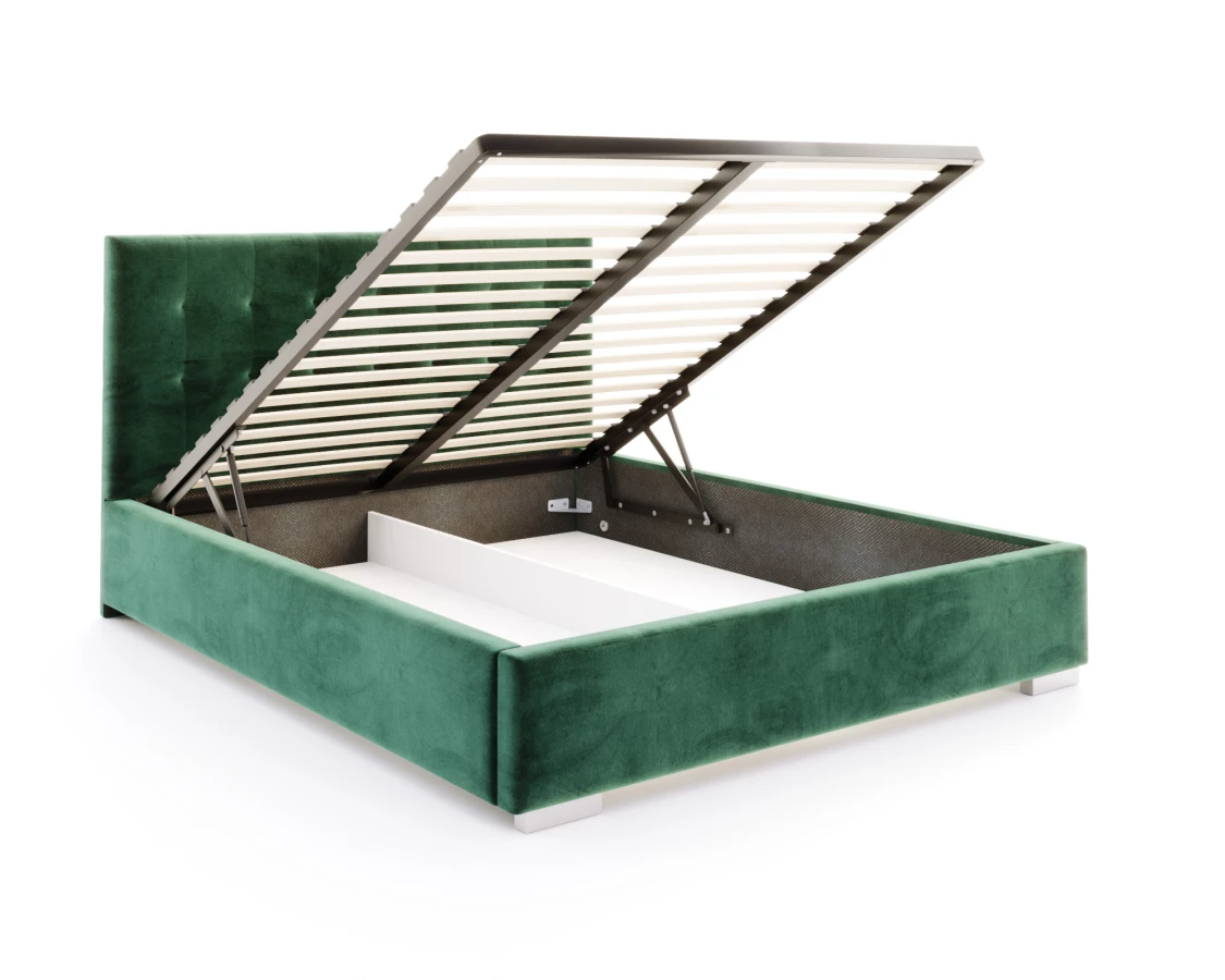 Jedes Bett sollte nicht nur bequem, sondern auch nützlich sein. Deshalb wurde beim Modell LUCERNA durch den Einsatz eines Hubrahmens die Möglichkeit geschaffen, einen tiefen Bettzeugbehälter unterzubringen und leicht zugänglich zu machen. So entsteht zusätzlicher Raum, der als Stauraum genutzt werden kann. Dank der verwendeten Unterteilung ist es einfach, Ordnung zu halten. So ist das Bett LUCERNA nicht nur ein bequemer Schlafplatz, sondern auch ein praktisches und geräumiges Möbelstück.