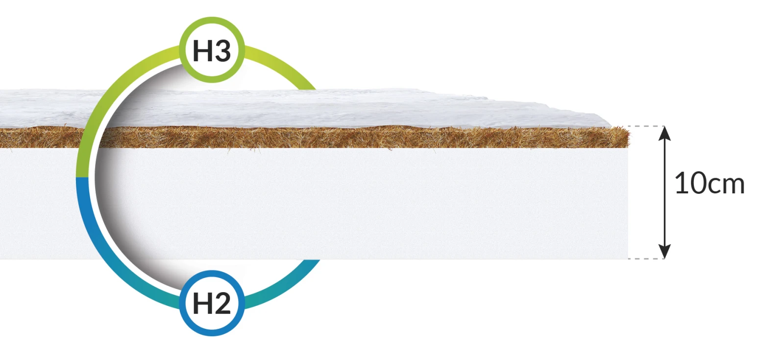Beim Modell BABY COCO MAX besteht der Kern der Matratze aus T25-Polyurethanschaum mit erhöhter Festigkeit. Es handelt sich um ein Material, das sich nicht verformt, so dass die Matratze sehr bequem ist und einen angenehmen Schlaf garantiert. Die hohe Qualität des Schaums sorgt für eine sehr gute Unterstützung der Wirbelsäule. Außerdem ist sie mit einer Kokosmatte ausgestattet, die die Matratze auf einer Seite versteift, ohne sie ihrer Elastizität zu berauben. Außerdem verfügt sie über eine Schicht aus klimatisierenden Fasern, die die Luftzirkulation verbessern und die Matratze isolieren.