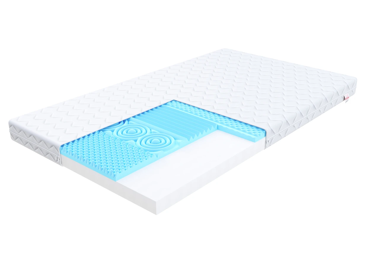 Die Basis der Matratze LEON besteht aus T25-Polyurethanschaum mit erhöhter Festigkeit und guter Luftdurchlässigkeit. Außerdem bietet er eine hervorragende Wärmeisolierung. Er verformt sich nicht, so dass die Matratze sehr bequem ist und einen angenehmen Schlaf garantiert. Die hohe Qualität des Schaums sorgt für eine sehr gute Unterstützung der Wirbelsäule. Außerdem zeichnet sich der verwendete profilierte HR-Schaum durch seine außerordentliche Haltbarkeit und Verformungsbeständigkeit aus. Ein weiterer Vorteil des Schaums ist seine poröse Struktur, die eine hervorragende Luftzirkulation gewährleistet und die Entwicklung von Pilzen und Schimmelpilzen verhindert.