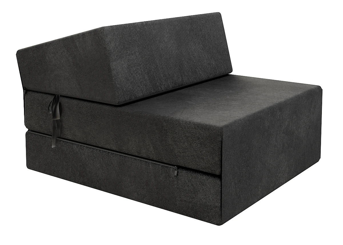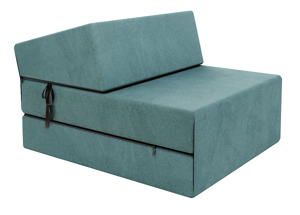 Das Sofa Suzi Trinity verfügt nicht über den klassischen Klappmechanismus aus schwerem Metall. Wenn es zusammengeklappt ist, werden die einzelnen Teile von zwei starken Bändern an ihrem Platz gehalten. Lösen Sie diese und klappen Sie das Möbelstück wie eine Ziehharmonika auf, um das Sofa in eine bequeme, dicke Matratze mit einer praktischen Erhöhung für Ihren Kopf zu verwandeln. Genauso einfach lässt sich das Sofa in einen Sessel umwandeln: Sobald die Teile übereinander gestapelt sind, müssen Sie nur noch die Gurte zusammenbinden - selbst ein Kind kann diese Aufgabe bewältigen. Das Möbelstück ist daher eine gute Wahl für das Zimmer eines älteren Kindes oder eines Teenagers, der gelegentlich seinen besten Freund zur Übernachtung einlädt.