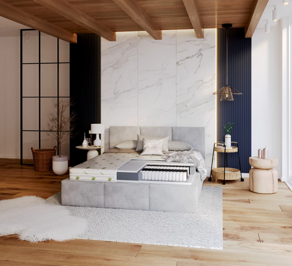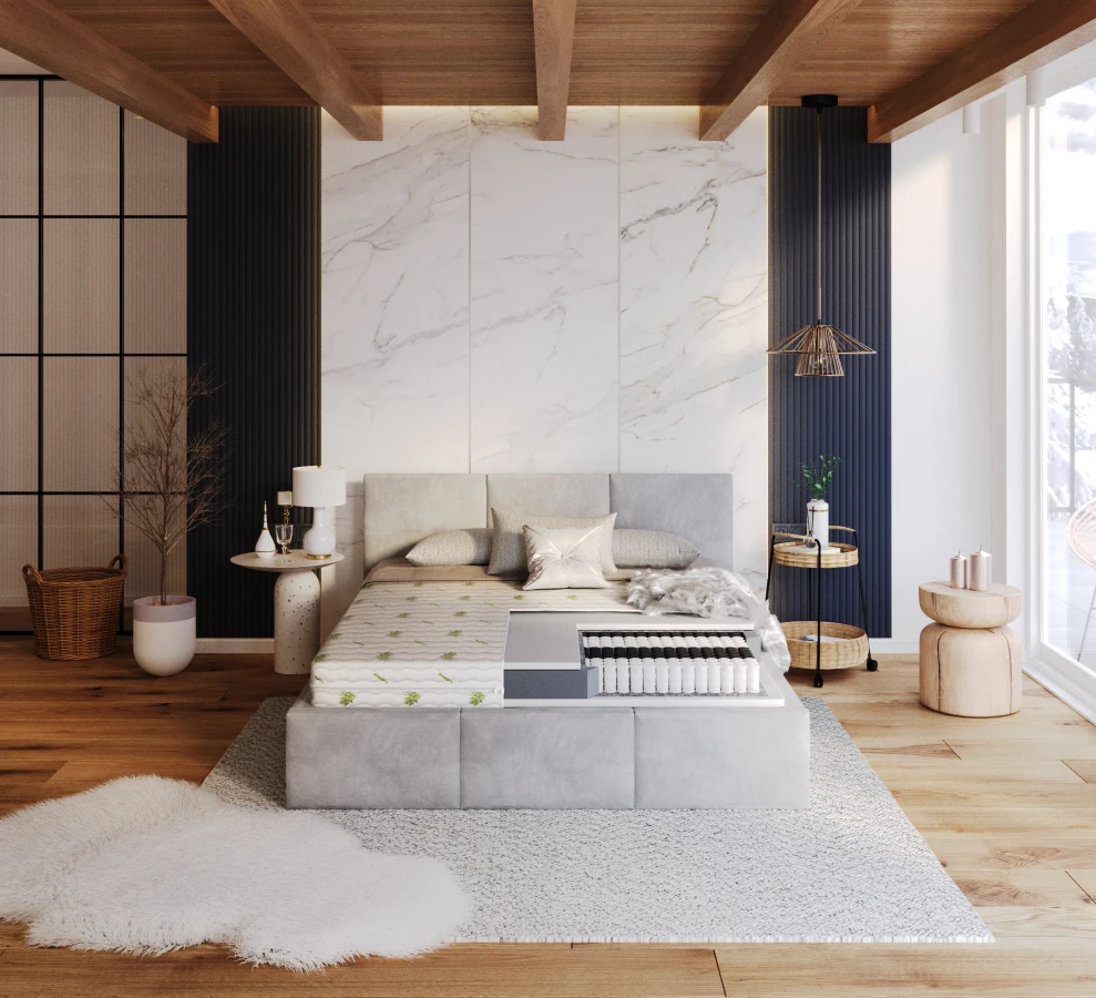 Die Taschenmatratze Aria ist eine ausgezeichnete Wahl für alle, die eine Lösung für einen gesunden, bequemen und effizienten Schlaf suchen. Ihre Taschenfederkonstruktion stützt die Wirbelsäule während des Schlafs wirksam. Jede der Federn der Matratze ist in einer eigenen Tasche untergebracht und arbeitet unabhängig von den anderen. Das bedeutet auch, dass sich jede einzelne Feder an das Gewicht und den Druck des jeweiligen Körperteils anpassen kann, entsprechend seiner natürlichen Kurven.