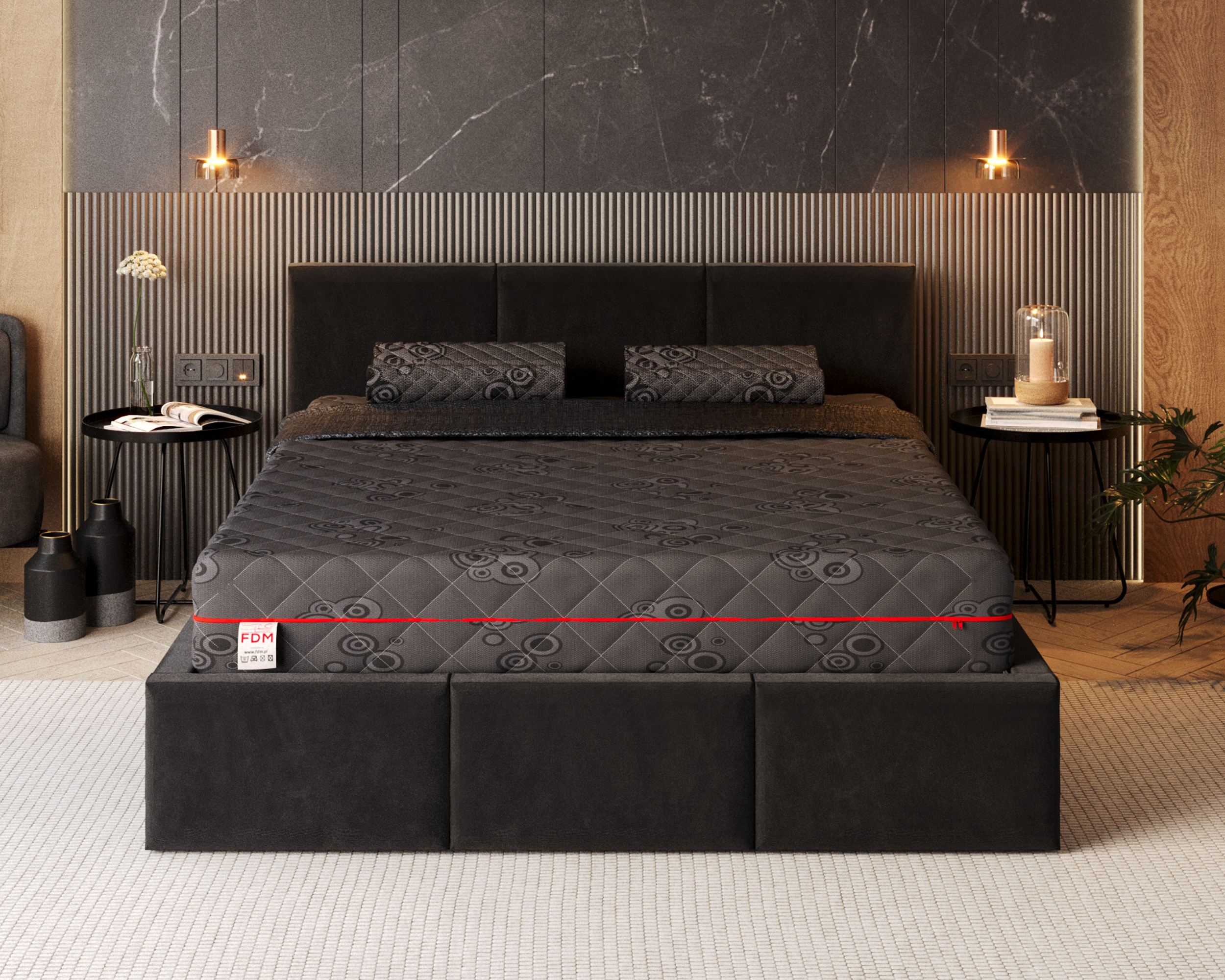 Aber das ist noch nicht alles! Schaffen Sie einen originellen Charakter für Ihr Schlafzimmer in Schwarz! Kaufen Sie das COMO BLACK-Profilkissen für die BLACK-Matratze, die ebenfalls mit einem einzigartigen Jacquard-Bezug ausgestattet ist. Die schwarze Farbe ist nicht nur elegant, sondern auch praktisch und leicht zu pflegen. Es ist definitiv ein Blickfang und hebt sich von den Standardbezügen ab. Ein schwarzes Kissen im Schlafzimmer? Warum nicht? Seien Sie originell und holen Sie sich ein stilvolles COMO BLACK-Kissen!