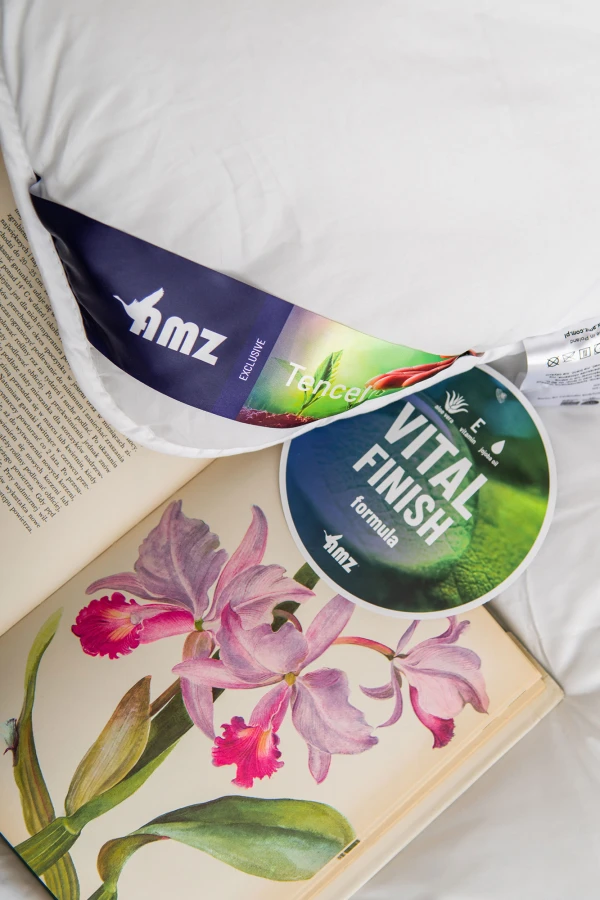 Die Tencel-Kollektion ist eine Produktlinie, die sich an Allergiker richtet. Die verwendeten Tencel-Fasern werden aus Holzzellulose gewonnen und auf umweltfreundliche Weise hergestellt. Sowohl die Bettdecken als auch die Kissen dieser Kollektion sind mit einem Stoff überzogen, der die vorteilhaften Eigenschaften von Baumwolle und Tencel kombiniert und sie weich, langlebig und sanft zur Haut macht. Die Produkte der Tencel-Kollektion enthalten eine Füllung , die zu 100 % antiallergisch und biologisch abbaubar ist.Der Batist-Stoff, aus dem die Produkte dieser Kollektion gefertigt sind, wurde aus natürlichen Baumwollfasern und umweltfreundlichen Tencel-Fasern gewebt. Darüber hinaus wurde er mit einer speziellen VITAL FINISH Formel veredelt, die gesundheitsfördernde Extrakte und Vitamine wie Aloe Vera, Vitamin E und Jojobaöl enthält. Aloe vera ist reich an den Vitaminen A, C und E, die als Antioxidantien wirken. Sie enthält auch Vitamin B12, Folsäure und Cholin, die als Antioxidantien freie Radikale neutralisieren. Vitamin E, ein weiterer Bestandteil der Formel, ist ein natürliches Antioxidans, das freie Radikale abfängt, die für eine rasche Hautalterung verantwortlich sind. Mit diesen Inhaltsstoffen wird der Stoff noch wohltuender für die Haut, da er ihr Geschmeidigkeit, Ausstrahlung und Elastizität verleiht und gleichzeitig nützliche Substanzen für die Hautgesundheit liefert.