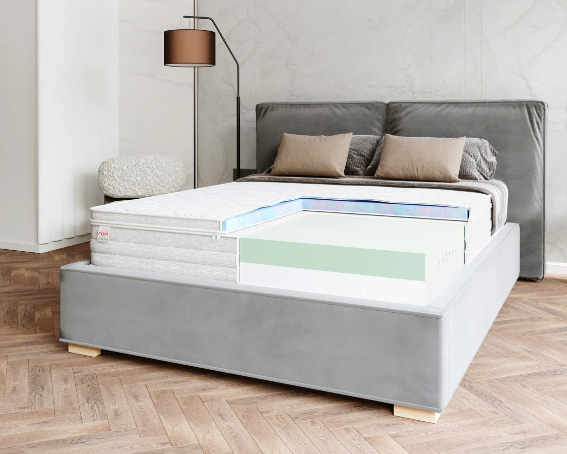 VISCO BUBBLE ist eine von drei Auflagen, die speziell für die modulare ORIA-Matratze entwickelt wurden und die es Ihnen ermöglichen, Ihren Schlafkomfort genau auf Ihre individuellen Bedürfnisse abzustimmen. Die Auflage wird mit einem praktischen Reißverschluss direkt an der Oberseite des Matratzenbezugs befestigt, was Stabilität, Nutzungssicherheit und eine schnelle Montage garantiert.