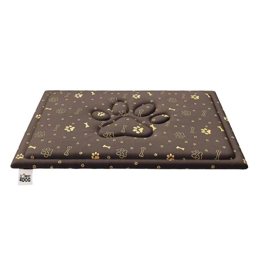 Das elegante und minimalistische Hundebett - Hundematte besticht durch sein einfaches, rechteckiges Design, wodurch es leicht zu transportieren ist und Ihrem Haustier ermöglicht, sich an verschiedenen Orten bequem auszuruhen. Sie ist aus dunklem Stoff mit dezenten Hundemotiven gefertigt und passt zu einer Vielzahl von Interieurs.